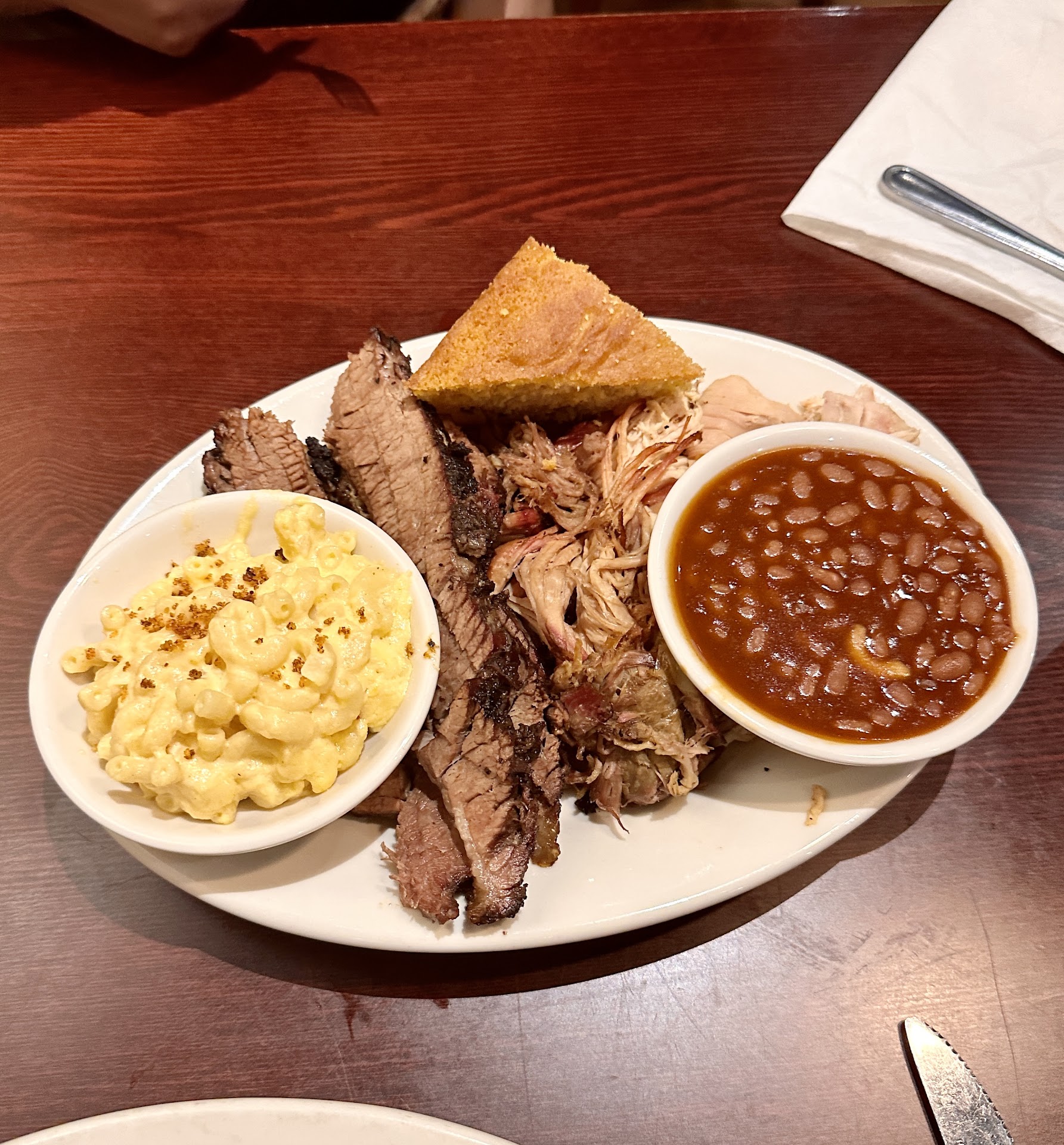 Read moreThis place is the worst barbecue place in town. It’s way over price and the food is very mediocre. I could’ve went to a fast food place and got better barbecue than this. I got the “famous” pulled pork sandwich that they claimed was the sandwich that started the restaurant. There was hardly any barbecue sauce on it it tasted like a glorified grilled cheese. They claimed mac & cheese was on the sandwich but you could barely taste it. I didn’t even finish. The fries were not fresh. It’s obvious that they are frozen fries that they use. The buffalo chicken dip was runny and hardly hot. The only thing good about this place was a live music. We also came in and there were about four tables available and we had to wait 20 minutes for a table. They don’t have any type of seating for you to wait for an available table. So we had to stuff ourselves at the bar waiting on a table. That’s absolutely ridiculous. I’ve never went to a place that didn’t have adequate seating when waiting on a table to open up. After we finally received a seat over in the corner we waited for at least 5 to 10 minutes for our server to come over. We were so close to getting up and leaving. We came there on a Saturday night and there was no type of manager walking around making sure that everyone was taken care of. Everyone was just doing their own thing there. It was an absolute joke and I will not be telling anyone...