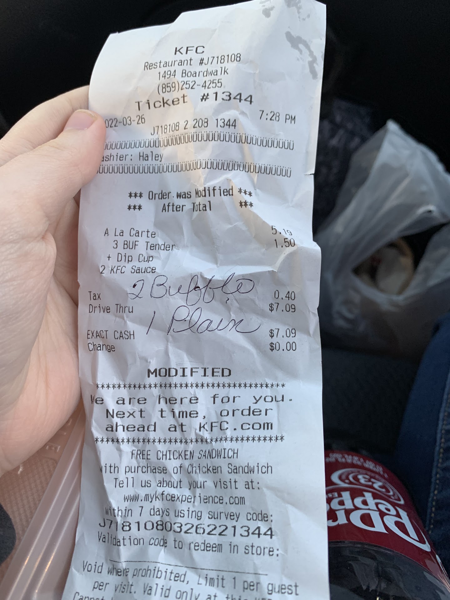 Read moreI tried KFC'S new Crispy Chicken sandwich again. The first time I tried it was in Louisville at the KFC on 19th and Broadway. It was awful. I know damn well that could not have been the new sandwich. I've gotten better chicken sandwiches at a gas station. I said when Lexington KFC'S start selling theirs I will try one again. Well. It was pretty to look at. It came in that same aluminum on the inside looking sandwich holder that they fold closed on one end like the other chicken sandwich sellers. BUT! It wasn't very warm. It was almost cold y'all. I swear to the Lord. I was disappointed. Why was it not as warm as it should have been? I bit into it. The chicken was crunchy BUT FLAVORLESS! The sandwich had no distinct flavor. None. And the potato bun. Yeah, its softer than a brioche bun. But it sure doesn't taste better than a brioche bun! And I didn't prefer the mouth feel. Sauce? I don't know what that was. I couldn't tell you. I could hardly taste any sauce. It needed it! The sandwich left a dry feeling in my mouth. It wasn't the worst I've ever had. It was just a plain tasting chicken sandwich. And I don't need to try another one from KFC. The sandwich in Louisville was awful, and this one wasn't anything worth suggesting anybody should try it. The number one winner so far? ZAXBY'S!!! ZAXBY'S HAS GOT POPEYE'S BEAT, BURGER KING BEAT, HARDEE'S BEAT, AND NOW KFC BEAT!...