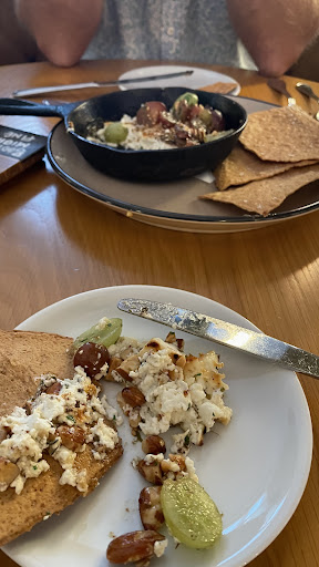 Pros- Service, ambiance, decor, shared board was fantastic. Pepper jelly was done well, biscuits were flaky and buttery. Great job on the pickles and chow chow. The deviled egg spread was an easy 8/10 too. The sweet potatoes were good but the roasted garlic yogurt tasted mote like flavorless sour cream