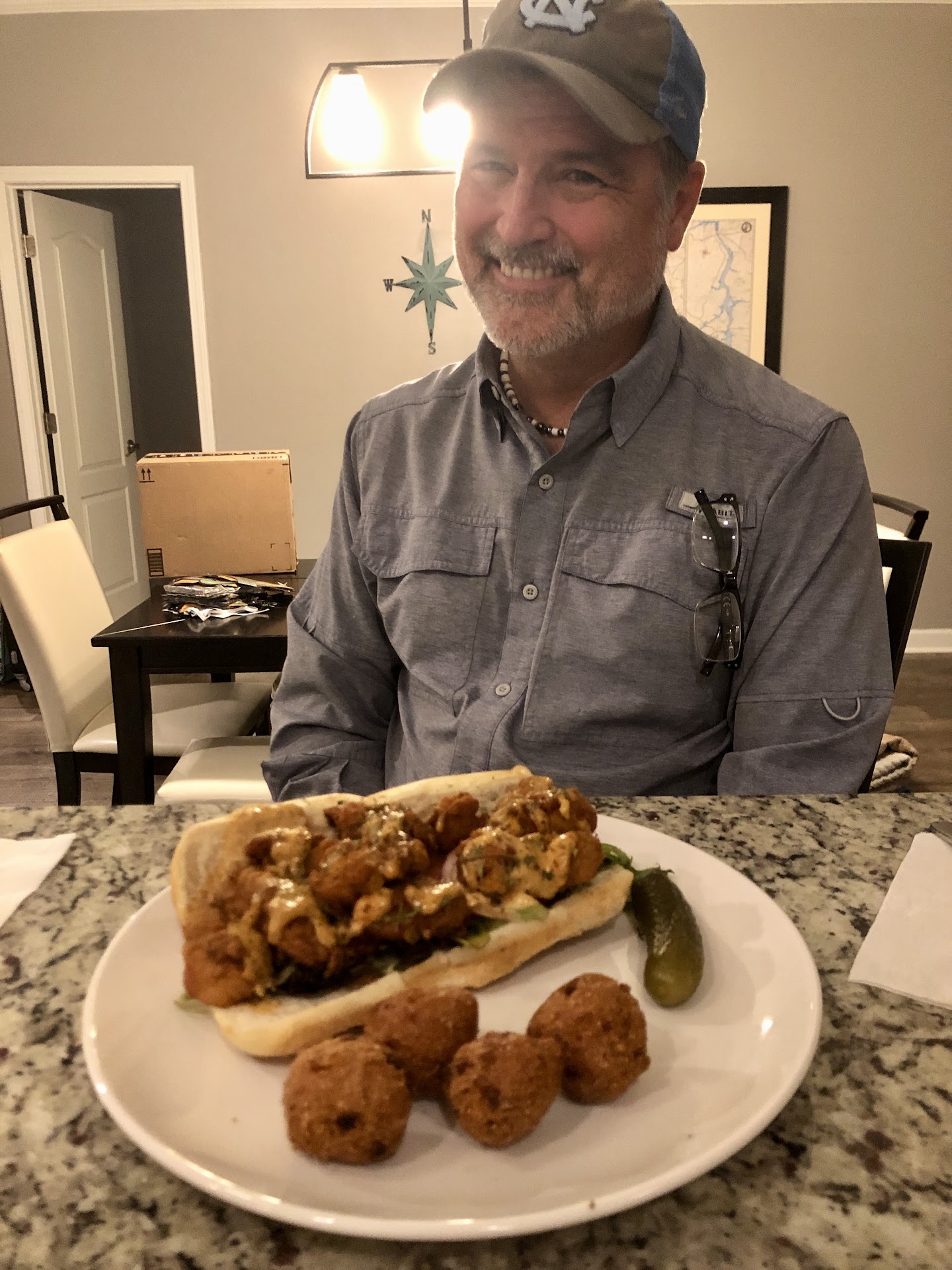 This will be our new favorite spot to stop at to get takeout as we come into town. The shrimp poboy, the grilled shrimp platter, and the fried deviled eggs were all fantastic! Flavors were on point. I am a huge shrimp fan. These were succulent. Not too small, not too big. The brussels sprouts side was also excellent. The only thing I wasn’t as crazy about were the hush puppies, which are a bit firmer than the ones I grew up with in the low country.