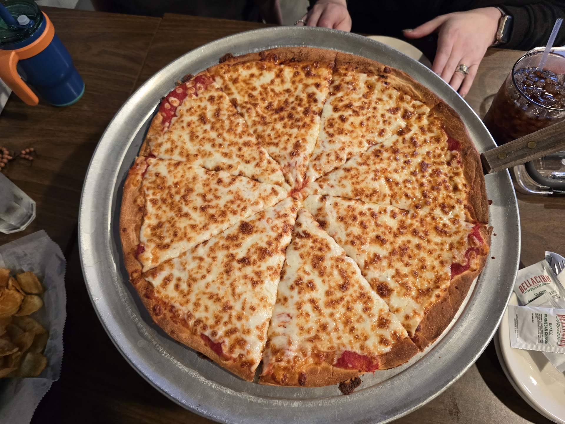 Simple atmosphere, very "small town" feel. Great and friendly people working. Ordered the pimento cheese dip with freshly made chips. The dip warm and really great. (A tall order since Conrad and Hinckle is across the street with AMAZING pimento cheese) We ordered a large cheese pizza. It was a nice size large. Flavor was on point. All the things you want with a simple cheese pizza 🍕 My 7 yo son said it was the best pizza in the universe and while I've def had some great pizza throughout my days on this planet, I would place in a top 20 list of all time mostly even top 10. Dough, sauce, and cheese were all great quality.