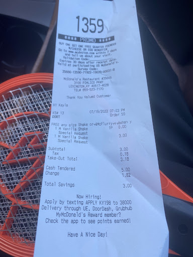 4.16.24 It must be the management. New employees, no experience, can't form a sentence and wants to argue. Perhaps it's the owner who doesn't value a good manager who would supervise and provide training to the employees. Lexington deserves better. No one seeks out the Pimlico McDonald's for the quality or service. Location/Convenience is the ONLY reason to use this McDonald's.