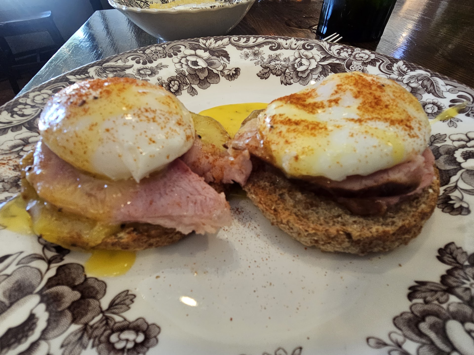 3.5 starsrounding down, because I think reviewers are being way too kind. Dare I say sucked in by a little charm and some unusual features? Or one too many mimosas? Sorry Momma Rabbit, I had coffee. We just got back from a nice Sunday breakfast at Momma Rabbit's Nibbles and Sips. We got there 5 or 10 minutes after 10, and it was already full. We were seated immediately however, given the choice of "Family style" or at the bar. We chose family style with another couple being seated at the other end of the table shortly thereafter. My husband had the Eggs Benedict with a side of grits for an extra $2. I had the Dixie breakfast bowl with a croissant with lime curd included. Both breakfasts were very good. Very Good, not outstanding. The service was excellent-no complaints. The whole experience however, was below par. I would not mind visiting again sometime, but not for Sunday morning breakfast. MRN&S came to our attention by being featured in an MSN list of the most charming restaurant in every state. The decor is clean and almost seems minimal but does have some charming and whimsical elements. They have done what they could with a square small room. Most Charming in South Carolina? No. Maybe in the top 20 most charming restaurants in a strip mall with the patio practically in the parking lot. It features some overstuffed chairs and a small couch, and lots of tables very close together. Against the left side is a bar with maybe 6 or 7 chairs uncomfortably close together. It has the feel of a Beatrix Potter story book. Towel spotted at the bar said "Romaine calm and Carrot on." Cute. Loved the coffee cups, and the silverware is Dansk. Loved the aprons the waitresses wore. Here is what knocked off some points for me: 1) It was very very crowded and close. No feeling of privacy whatsoever. It was loud and bright. It might be OK if every table was not occupied and waitresses running around and people waiting to be seated. They need to expand to a larger space and add some alcoves, rooms, dividers, or booths. It looks like they will be able to choose to do so as it seems very successful. 2) You have to get up to get your own coffee. That's fine. But it is so crowded and only room for one person at a time at the cabinet. They have 3 different coffee dispensers, 1 decaf. They ran out of one of the regular coffees. This is not acceptable for breakfast, not 1/2 hour after they opened. 3) Yes they cater to a health conscious demographic. But no pink, blue or yellow stuff offered? They have honey sugar, cube sugar, cinnamon, and something else I don't remember. They do not have salt or pepper at the table. Sigh. Ok, I get it: HEALTHY. But don't tread on my personal choices. Not even Pepper. Why? Especially when you're serving sausage, hollandaise sauce, and cheese, hash browns and eggs in one healthful bowl. Another interesting thing is that they don't bring a bill to your table. You just get up, stand in line, and go to the register and they ask you where you sat. We are OK with that. I guess my husband was able to peruse the bill before he paid. I waited outside in the blazing South Carolina heat because I was in everyone's way just standing there. Call me when you have a bigger space to be...