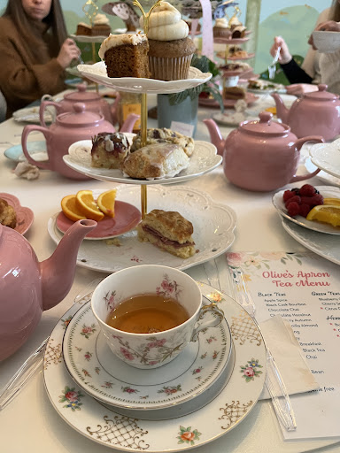 Omg!! Where do I begin?! There is so many great things to say about this place and the staff that work here. Now I’m from New Jersey and yes I drove all the way from there to Lexington, KY with my mom as a mommy&me (daughter) trip which my dad also eventually joined in last minute haha. Even so, my mom and I always loved going to tea rooms in NJ and other states, but Olive’s Apron Bakery & Tea Room was the BEST hands down! I booked the tea brunch for 11:15am. It was very hard to keep it as a surprise for my mom but it was a very easy and smooth process and Ashley answered all my questions prior to me booking. Let me begin by saying, as soon as we parked, the house reminded me of the pink Barbie toy house my parents had bought for me as a little one. When we walked into Olive’s Apron Bakery & Tea Shop, the atmosphere was so welcoming and the wonderful scents of the fresh baked goods and tea just filled the room. The gorgeous walls filled with splashes of pink colors, butterflies, aprons, tea cups, classic vintage furnitures, and the pink chandeliers which consisted of small tea cups and butterflies surrounding it made me fill like I was a little girl (I’m 32 now). As we sat down, we found a list of amazing teas, and Julie who warmly welcomed us took the time to describe the various blends that each tea consists of. The owner Ashley even came by to allow us to smell one of the tea blends that we had chosen and all I can say is MY GOODNESS. We were also presented with scrumptious cucumber sandwiches; apple slices and goat cheese sandwiches; delicious chocolate brownies that literally melt in your mouth while also providing a long lasting burst of chocolate that remains on your palette for an additional 25-30 minutes after eating; caramel frosted cupcakes; lemon shortbread cookies; and lemon drizzled glazed blueberry scones that would put Starbucks and any other bakery you think you like to absolute shame (sorry, but not sorry because it is true). The unlimited tea options were out of this world and it was even more wonderful to know that everything there is from locally owned business that make it their goal to work together to make the community the way it is. Ashley, her mom, and Julie are wonderful, professional, humble, and so personable. They make you feel like you are a member of the family or longtime friends as soon as you walk through the doors. I’ve been several places and have travelled across country beginning in NJ then up to Boston, through the Southeast, some of the Midwest, and into California and trust me when I say that Olive’s Apron Bakery & Tea Shop is truly a gem. I urge you all from near and far to make your way down Olive’s Apron Bakery & Tea Shop because I know you won’t be disappointed. Ashley, stay encouraged and keep up the amazing work you are doing....