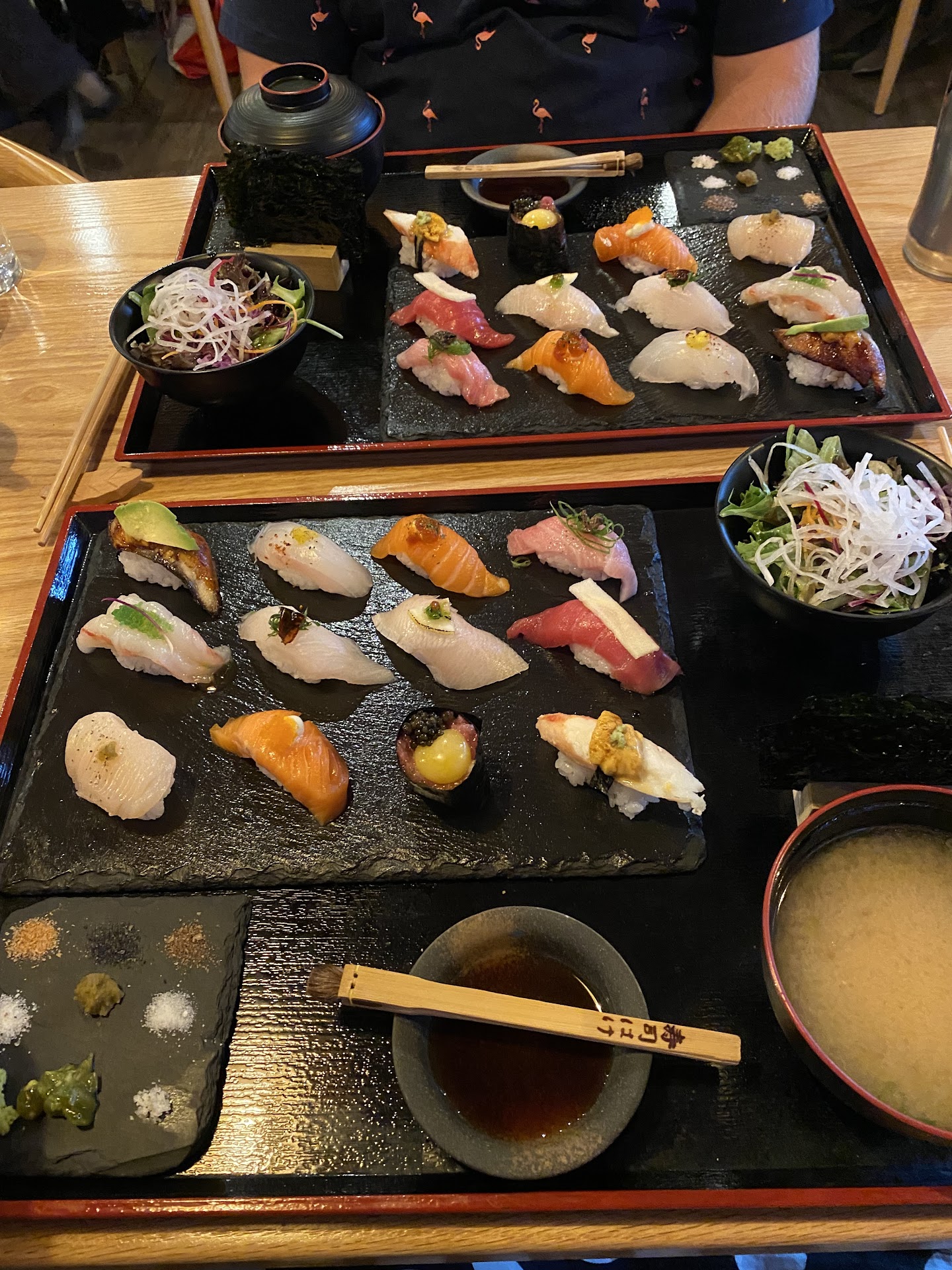 The quality of fish is excellent. The cucumber infused water is a nice touch. Probably the best miso I've had. This place is basically fine dining Japanese very focused on serving sushi in a French-influenced style of presentation, perhaps sometimes ostentatiously that gives way more to presentation than taste. This is the kind of place you want to bring friends to impress them visually. It's a contemporary art gallery of sushi.
