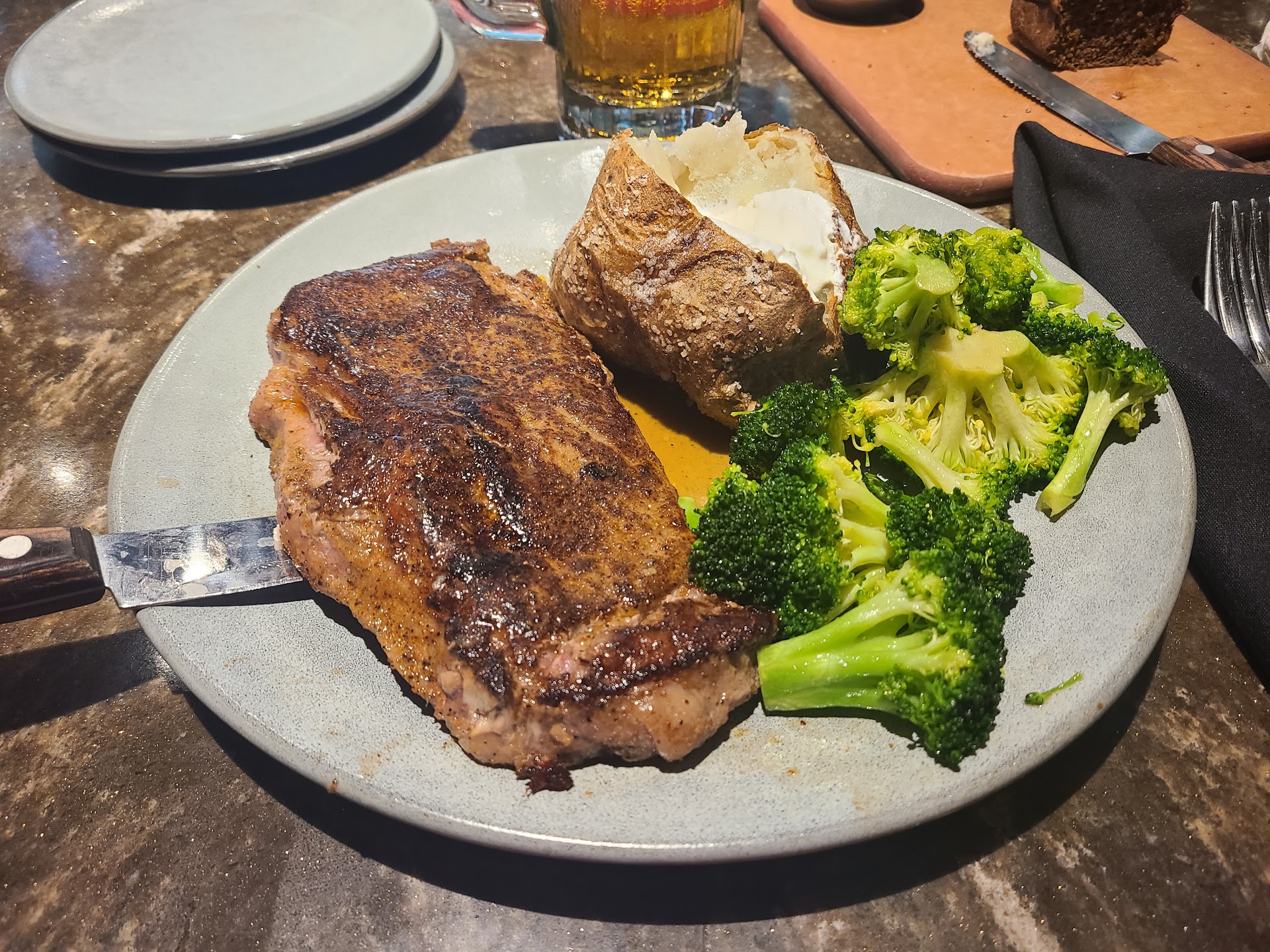 For sides, I highly recommend the baked potato and the seasonal veggies. The potato came loaded just the way we asked, and the veggies were fresh and perfectly steamed with just the right amount of seasoning.