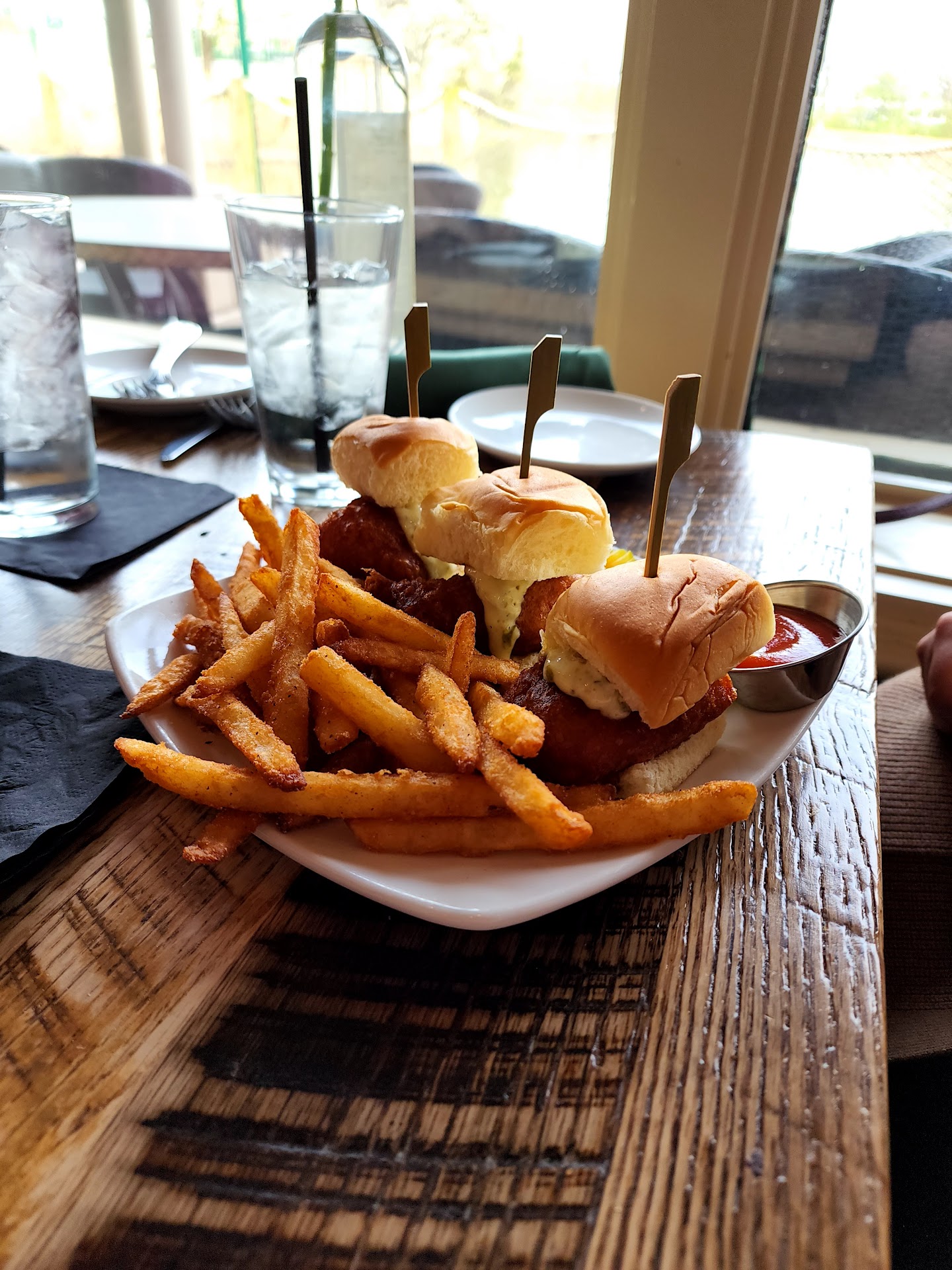 My fiancé tried the Cod Sliders and bistro fries. This is made with fried cod, house made tarter sauce on a bun. The sandwiches were fried well, and the buns were soft and fresh. The tartar sauce was tangy and just the right touch.
