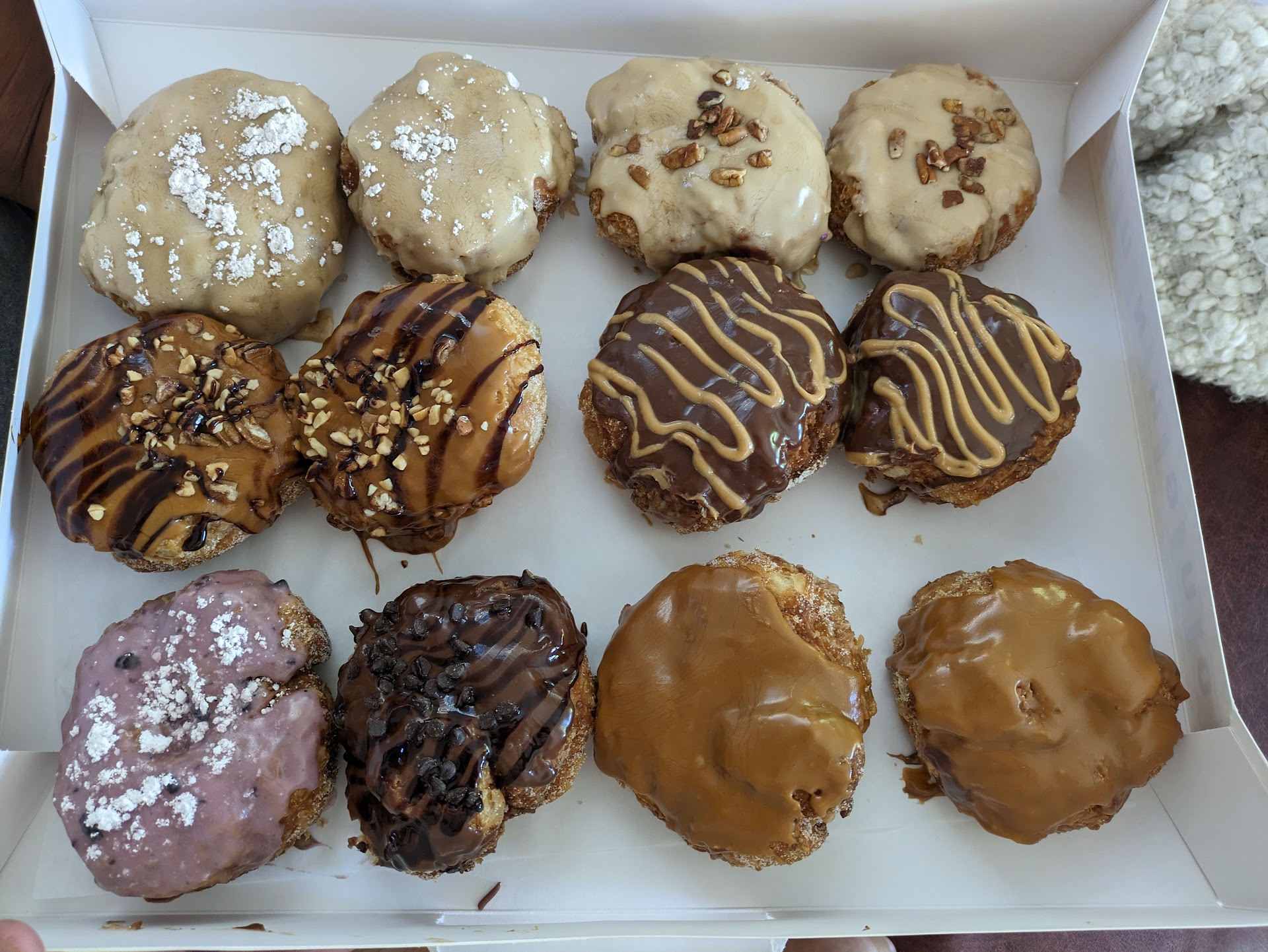 Now, onto the star of the show: the doughnuts. Oh, the doughnuts! Each one is a masterpiece of flavor and texture, with options that will tantalize your taste buds from the first bite to the last crumb. Personally, I can't get enough of the turtle, maple pecan, French toast, and bourbon varieties, but honestly, you can't go wrong with any choice on the menu.