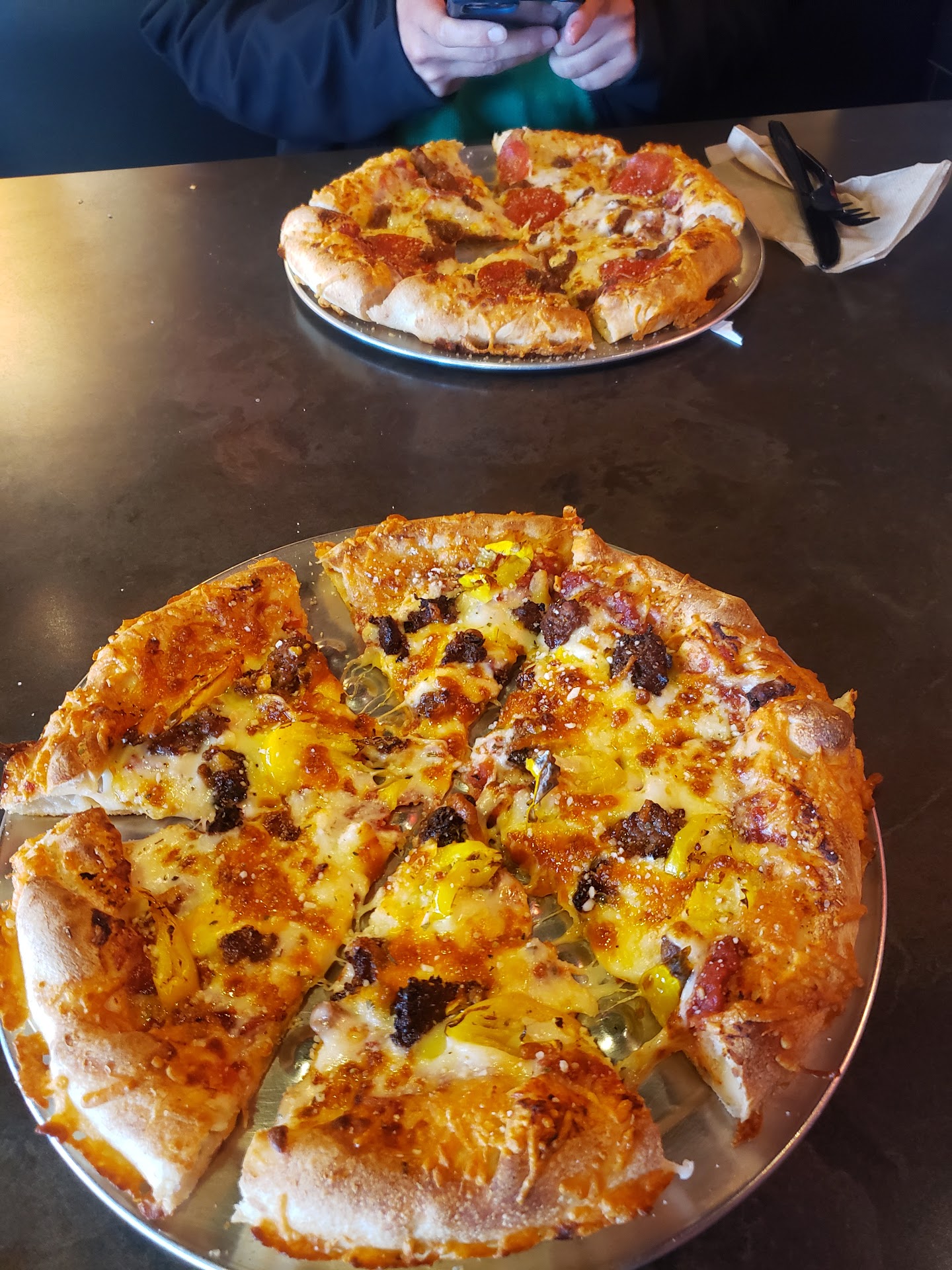 Read moreFirst let me say OMGOODNESS!!!! This is now my absolute favorite pizza place!!! 1. Here 2. Roosters 3. Dominoes I loveeee the parmesan crusted stuffed crust!!!! (Tastes way better than pizza huts stuffed crust)I got unlimited toppings and chose their BBQ sauce chicken Canadian bacon reg bacon hamburger cheddar cheese and got the magic dust ( which is a 3 cheese blend sprinkled at the end) and the magic dust sauce which is garlic butter mixed with magic dust and squeezed on the outer crust.....fantastic!!!! Other than it being a lil flimsy (and that's because of how thin the crust is in ratio to the stuffed crust part) nothing beats this pizza. We got 2 personal pan with unlimited toppings 1 with 5 meat 1 large drink 1 ultimate brownie for 20.44!! The best 20 ever spent and will be back again very soon. Please add a tipping feature to the receipt when we pay by card cause I was not able to tip since I don't carry cash. Please give this...