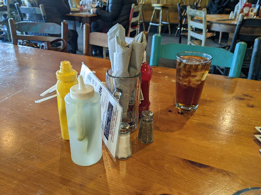 Read moreI had mixed opinions about this place. Perhaps I went in with high expectations based on the reviews. I think that if this location was elsewhere it probably would NOT rate as high as it does. First, the business is in a plaza that is in a somewhat awkward location. Once I finally located the pub, I walked in, everything is outdated. There is a sign that sits on the bar "We do NOT have WiFi, pretend it is 1989." It genuinely felt like that. We all ordered Hamburgers, we were kind of in a hurry. I wanted two patty's on my burger, I was willing to pay extra, but NOT willing to pay for an additional sandwich. My request was not accommodated. I don't know why places get so hung up about this especially if the customer is willing to pay. The food was out in a timely manner. Its bar food, nothing special. The burgers were alright. In hindsight I should have waited a few more miles and gone to a Red Robin if it was burgers I wanted. I did visit their public restroom. The door just has a plain photo of a native american. Nothing on the restroom doors screams men or women, at first I wasn't even sure it was a bathroom(see attached image). The restroom itself was clean, probably better than your average bar. It seemed like they cleaned the floor with coke and pancake syrup. My shoes were sticking to the carpet when I walked out. It was awkward and I wasn't expecting that. When I mentioned we needed to leave the bar keep was light on her feet, and did go out of her way so we could settle. I greatly appreciated that, and for that I will provide an additional star. All in all 3.5/5. If we were there just to drink alcohol it could have been different. Since we were travelling, drinking was not an option. They definitely could have...