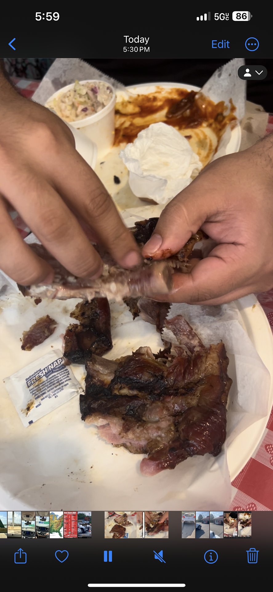 Read moreWe saw a bunch of reviews for this place online and everyone spoke very highly of it. I’m not sure how other people are hyping this place up when the food was literally flavorless with strange textures. This establishment has waged a war against seasoning and flavor. If their intention was to eliminate taste, they’re winning. The brisket was like cold pot roast with burnt fat pieces. Amazingly, they’ve found a way to make the texture of the ribs both similar to beef jerky (with full membrane intact) and rubber simultaneously. The best way to describe the flavor would be what I imagine road kill raccoon without seasonings tastes like. The Mac n cheese looks so appealing, but is also flavorless? Was it real? Idk. The egg rolls were cold inside. The fried green tomatoes had no salt, and the batter was raw towards the tomato. It was my first time trying them so I don’t have anything to compare them to. We spent over $100 on a family of 5 and the only redeeming quality with the food was the corn bread. As far as the atmosphere, it was 90+degrees Fahrenheit outside and the air conditioning was sub par. The cooks are likely in need of medical attention because it got hotter towards the back. The place isn’t really clean, but whatever. We had to repeat ourselves a lot to get the order correct and were missing items. The staff didn’t really seem interested in anything, but again, they’re likely suffering from heat exhaustion. The hotel that shares the parking lot is sketchy. It seems like people live there and it’s very dilapidated. I wouldn’t feel...