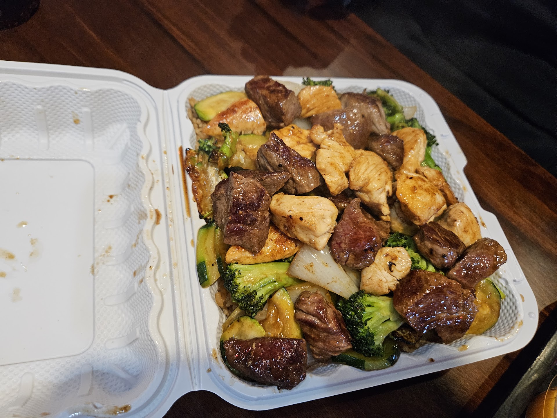 Read moreI've eaten here 4 times. Each time I received way more food thst I could eat in 1 sitting. A friend went with me the 2nd time. She got the sesame chicken, which was big pieces of chicken, full container of rice and a pork egg roll. All that for$7.95, the special. That evening, I got the filet, shrimp hibatchi style. It had big shrimp, steak, onions, and broccoli on top of the rice and it was so much it was flowing from the container. The 1st time that I visited here to eat, I had sushi. It was fresh and delicious. The 3rd time I ordered General Tsos chicken, the special for $7.95. Again, there was so much food it could have been shared with another. It had large pieces of white meat chicken, plenty of sauce, an egg roll and all on a full container of soft fried rice. Delicious! 4th time, tonight, I ordered the shrimp fried rice. I expected a small fried rice container like most Chinese restaurants give you, but no, it came like an entree. Large, plump shrimp on perfectly fried rice. Came with pork egg roll. I also ordered the pork dumplings, fried. You receive 8 for $5 something. Every order comes with their house sauce, which is a slightly sweet, thick sauce that is devine. The owners always greet you upon entering the store. Everyone is very friendly and they don't have a problem when you need extra sauces. The eat-in area is small but has a number of booths. The restaurant always smells clean and is visually clean and well kept. The drive-through is always busy, but they're efficient to get you through quickly I can't say enough about the food quality or quantity. It's my new favorite place to eat. Don't worry about the other reviews. Could we have had different owners.?.? They are always extremely busy, so many people must agree with me. I'll post some pictures...