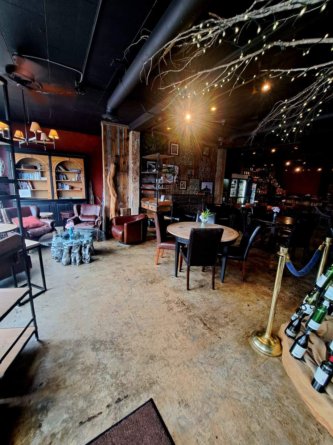 The atmosphere is so much fun and really feels like a neighborhood place, but also somehow upscale while being deeply comfortable. The lit-up tree made out of wine bottles is so much fun.