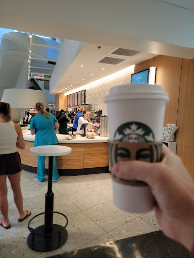 Hey Y'all!!! It's your Wheelchair bound woman about town, once again, on the roll and on the go. Next up,my review of the Starbucks location, inside UK KY Clinic(740 S. Limestone, Lexingron, KY, wing C, 1st Floor). This is my favorite location, in Lexington, I'm just being honest. The reason I say that is because it brightens my day after a FULL day of appointments. Another reason I love this location is because of the vibe. It's a mixture of doctors, nurses, Medical students, regular students, Clinic staff, patients and caregivers. It's ALWAYS buzzing with activity. I love the Starbucks staff member's. They are so helpful and attentive. If you happen to NOT be Techy, they will assist you with placing your order, through the app. I love everything on the Starbucks menu; but I do have my go-to menu items(Grande Medium Roast with Equal, Spinach, Feta & Egg White Wrap with Sriracha sauce and Avocado Spread). On the day of this review, I tried the Spicy Falafel Pocket Sandwich with Sriracha Sauce and Avocado Spread. I cannot recommend this sandwich enough!!! I highly recommend the Moon Cheese AND the Archer Turkey Jerky!!! Omg, eaten together is a Umami filled level of Euphoria you didn't know you needed!! We smashed the entire bag in no time. TRUST ME, Grab 2 bags of each!!!! I always have my reusable Starbucks cup or my UK Wildcat Cup with me and LOVE that you can state that within the app. How cool is that?!?!? The one thing I hate is that they removed the tables, so unless you go to the 3rd floor, where the Deli is, there isn't anywhere you could eat your food. There are benches , located throughout KY Clinic. So, if you're in a wheelchair, we'll, unlike in the past, those tables are long gone. I'm guessing they were removed during the Covid Pandemic. I really wish they would bring at least 2 tables back, if possible.