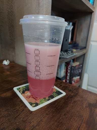 I don't have a picture of the first time they made my drink. But it was undrinkable. When I had them make it, they again used what looked to be the pitcher for the passion tea, I've noticed that other Starbucks have containers that they put their refreshers in now so I just assumed that they didn't upgrade to those and we're using the tea containers instead. My drink tastes off there is no caffeine buzz that the refreshers normally give you. My lunch break was over so I couldn't go behind the counter and ask to make it myself. I will not be going to another Starbucks in a Kroger and frankly I don't think Kroger should have one in store if they are going to drop the ball like that continuously. Unacceptable. Complete waste of my...