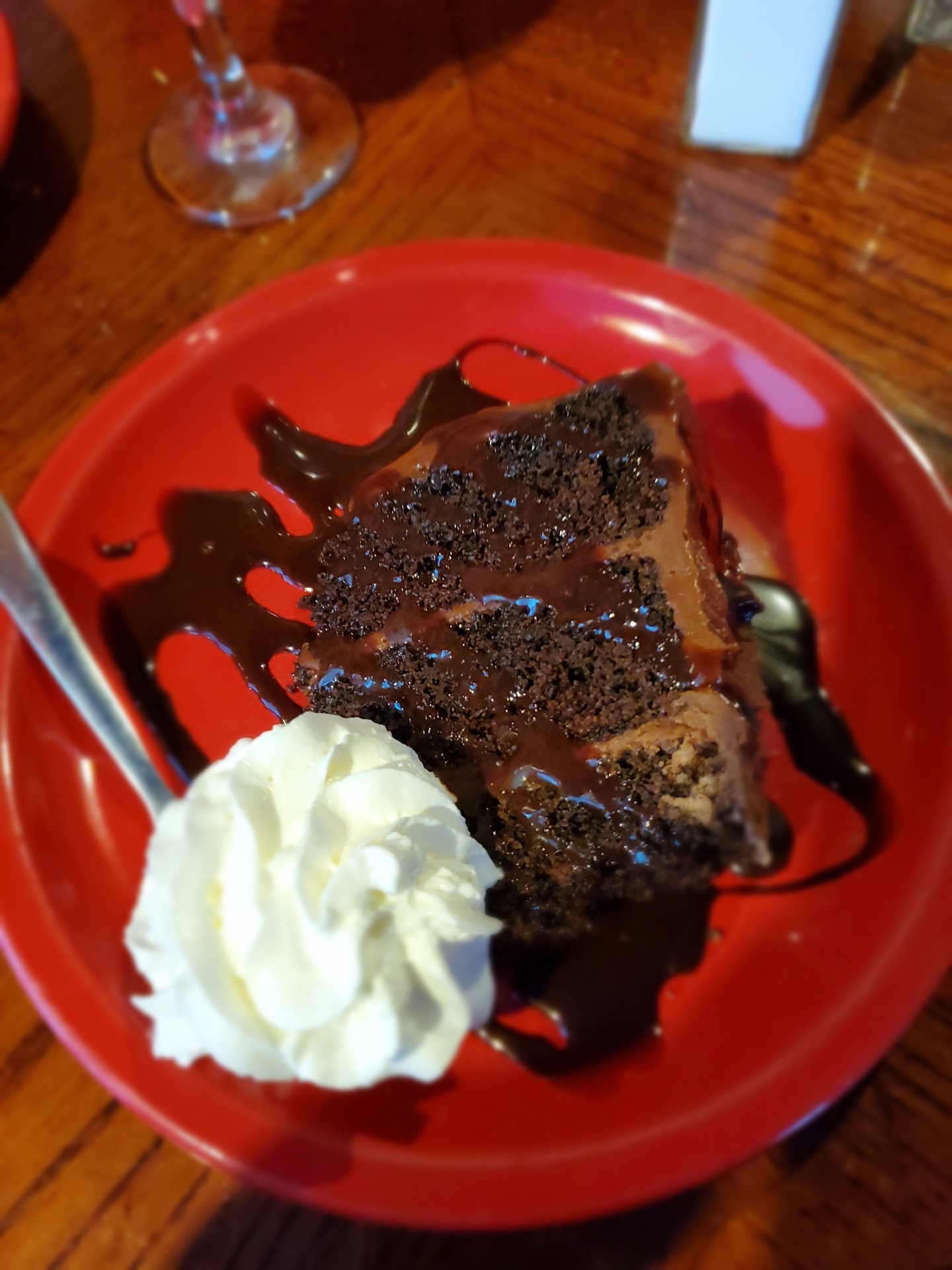 For dessert, we tried the Peanut Butter Pie and Chocolate Dream Cake. The pie was served on an Oreo crust with crushed peanuts and M&Ms on top, it was rich but not overly sweet. The cake was a bit dry, the buttercream icing was dry also, but it had good flavor. The cake was topped with a chocolate sauce that was a bit overpowering to the cake.