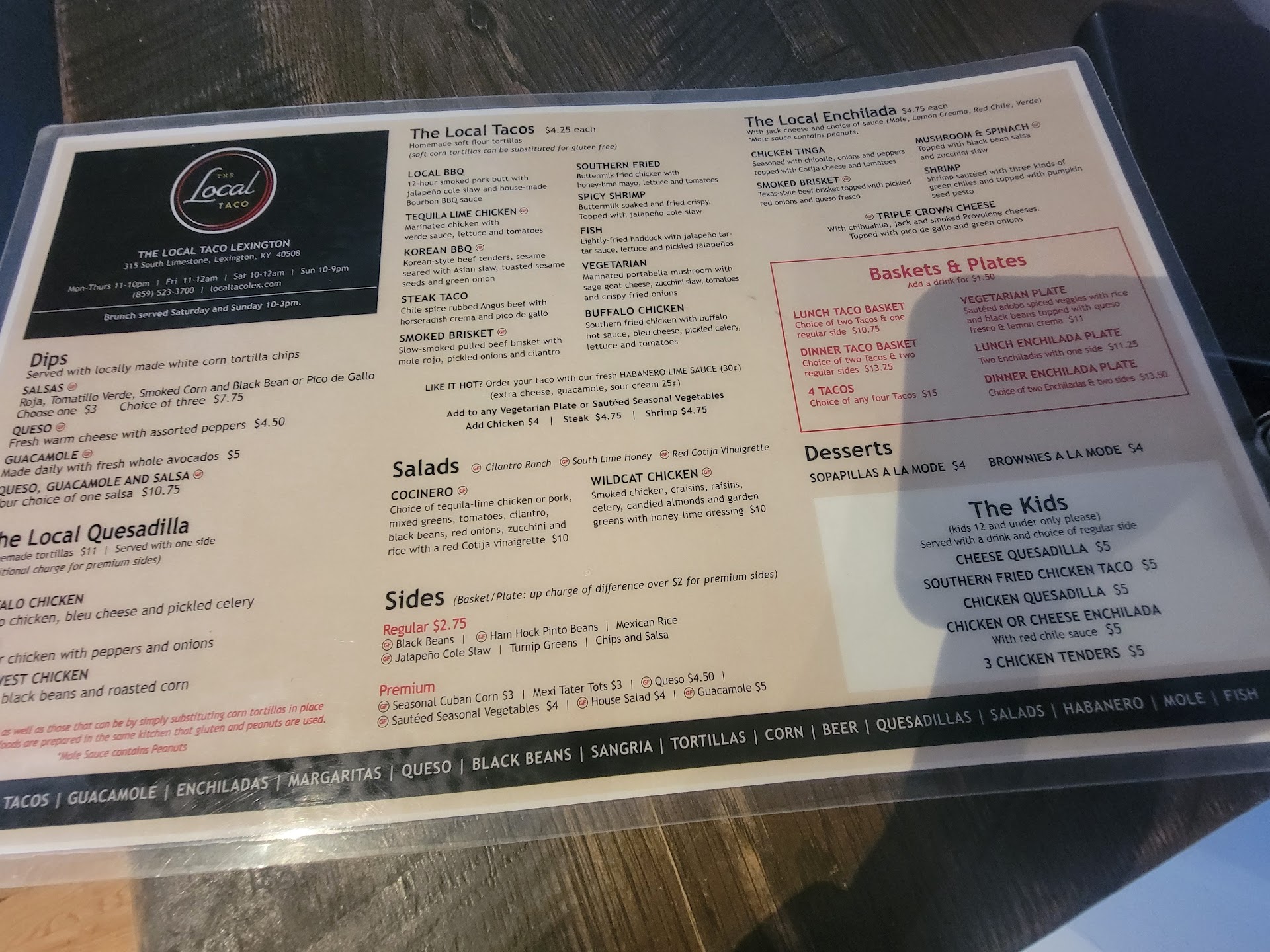 Read moreI never take the time out of my day to review places unless they've really had an impact on me (positive/negative) but 3x in row I've had the WORST experience. The only reason I've allowed this to happen multiple times is because I absolutely use to love local taco and understand mistakes happen! However, I've ordered take out the past 3 times and not only have they completely got my order wrong but they forget multiple sides to where there's literally not enough food for my family. This is the 3rd time in a row I've had the same exact experience. They even told me to check the receipt to make sure everything was correct and on paper, it was! Food is never warm and even though I have a short 5 minute drive, I know that's not completely their fault because I understand how picking it up works. Not to mention they left me on hold for 13 mins, I hung up- called back and got right through. Dining in, I highly recommend. But if your considering any other option, you will only be paying for things...