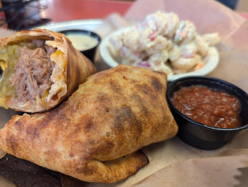 The pickles arrived quickly and were delicious, though a little heavy-handed with the salt. Our food arrived shortly thereafter (swift service is a MAJOR perk when dining with children). My first impression of the burrito is that it was overcooked based on the nearly charred wrap. Upon tasting it, I was wrong. The char was thoughtfully intentional; a textural contrast to the tender fillings. The pulled pork was immaculate, possibly among the best I've ever had. It was tender and flavorful. The choice of pickled onions to offset the rich umami of the pork was brilliant and elicited an involuntary physical response (moan). The house made macaroni salad was also worth mentioning; well seasoned, not overly sauced, and spot-on al dente textured.