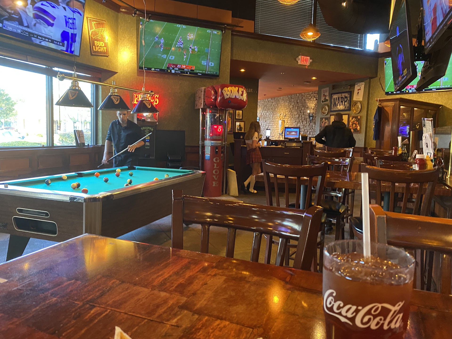 Ā Ā Ā Read moreBeen on multiple occasions. Lunch time during week, supper time and Fight nights. Lunch specials are quickly made and pretty quiet so meals are served fast. Suppers and fight nights are great. On my count you can view 10-15 TVs while eating. Two pool tables and a patio that is open during good weather. Plenty of booths, tables and bar space. Big TVs for great fights. Burgers, chicken tenders and normal every day food is great. Today I had the sirloin steak with mashed potatoes and cole slaw. Brown gravy was awesome cole slaw was thick and satisfying. Steak I ordered medium well not knowing the temp they fix. I wish Iād ordered medium rare to make it a little more juicier. All in all food was decent. Sirloin was $24 and ribeye was $28. Food price wasnāt terrible. Menu attached with price. Service is always 10 star. The servers always are smiling and have good conversation while youāre dining. Added a draft beer (Miller Lite) and it was cold and satisfying. Disclaimer, they are required to wear a skirt and skimpy top as their uniform. If thatās a no for you, then that sucks because the TVs and atmosphere are great. TouchTunes is here so you can pick your own music. They also have a music stage for music nights. Definitely need to come back for one of those. Iāve had great experiences eating here.
