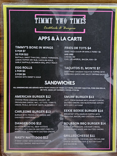 My husband and I chose Timmy’s after a quick google because we were looking for a good burger fast after time wasted at another restaurant. It was exactly that, but it was also the best burger that either of us have had in many years. We showed up right after their comedy night packed in and the comedians moved outside, and from the jump, Joe was bartender-cum-chef and did everything to turn the evening around for us and keep us from swearing off Lexington. If he made double whatever he makes right now he’d still deserve a raise. Killer wings, killer taquitos, killer eggrolls, killer service…y’all redeemed a whole city with...