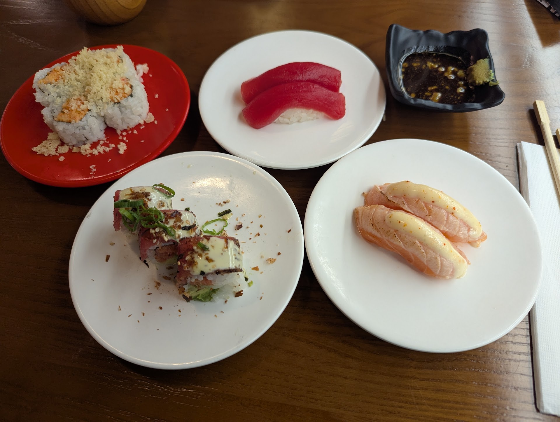 Note: the first plate of nigiri came by after 20 minutes of mostly empty plates coming by.