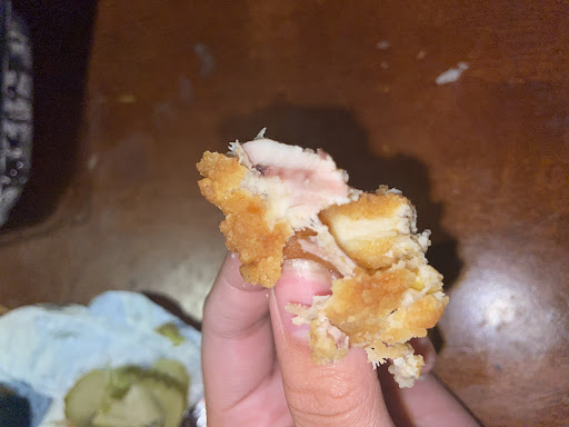 During a visit on Friday around 10:30 ish pm, I ordered your classic chicken sandwich. I added a couple stuff to it but nothing out of the order. Well, upon taking my first bite, I was immediately concerned by the unusual texture. Regrettably, upon further inspection, it became evident that the chicken was severely undercooked, to the point of being raw in the center. This is not only unappetizing but also poses a significant health risk.
