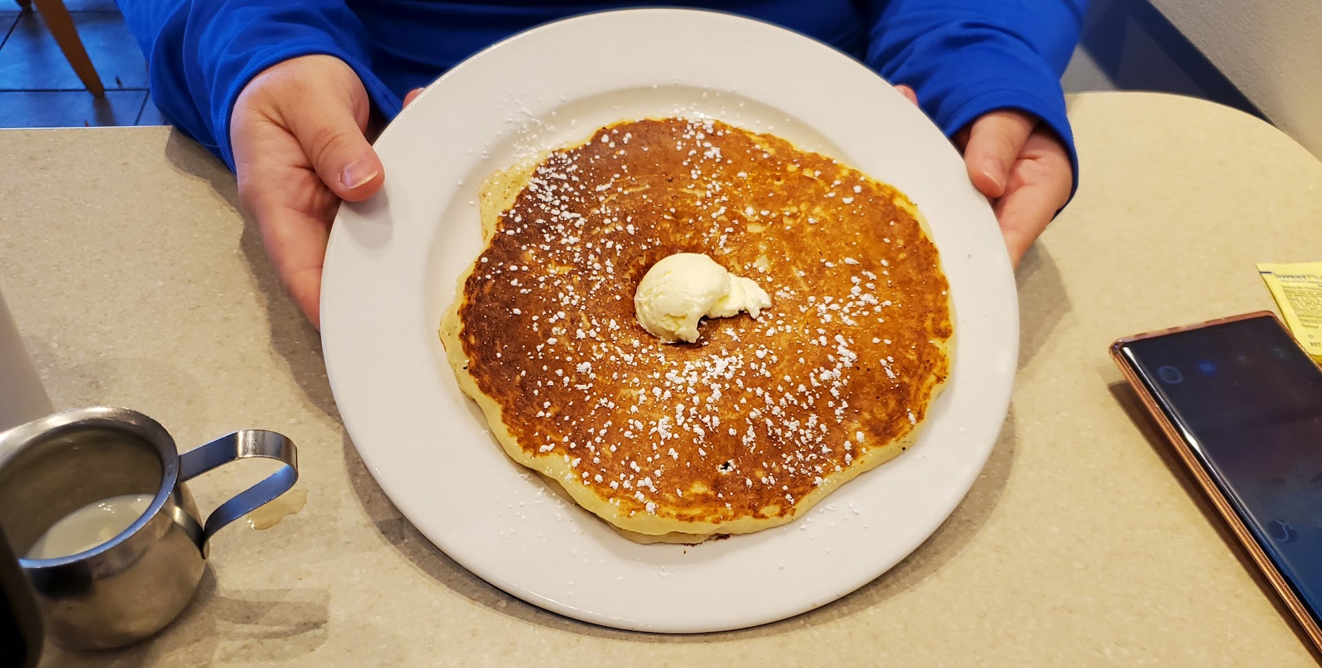 My fiancé tried the Breakfast Burrito served with home fries and black beans, and a side pancake. The burrito is made with a flour tortilla, scrambled eggs, chorizo, cheddar jack cheese, poblano peppers, onions and topped with queso, sour cream, pico, avocado and green onions. The burrito was working it with the ingredients. Everything was cooked and seasoned well, not spicy, and it just melted in your mouth. The fries were seasoned well, super crispy yet still pillowy in the middle. The black beans were cooked in bacon, and it stood out in the first of the bite. Personally, just add the salsa Verde, and it would be perfect. The pancake was fantastic but a little under done in the middle, but she said that worked for her.
