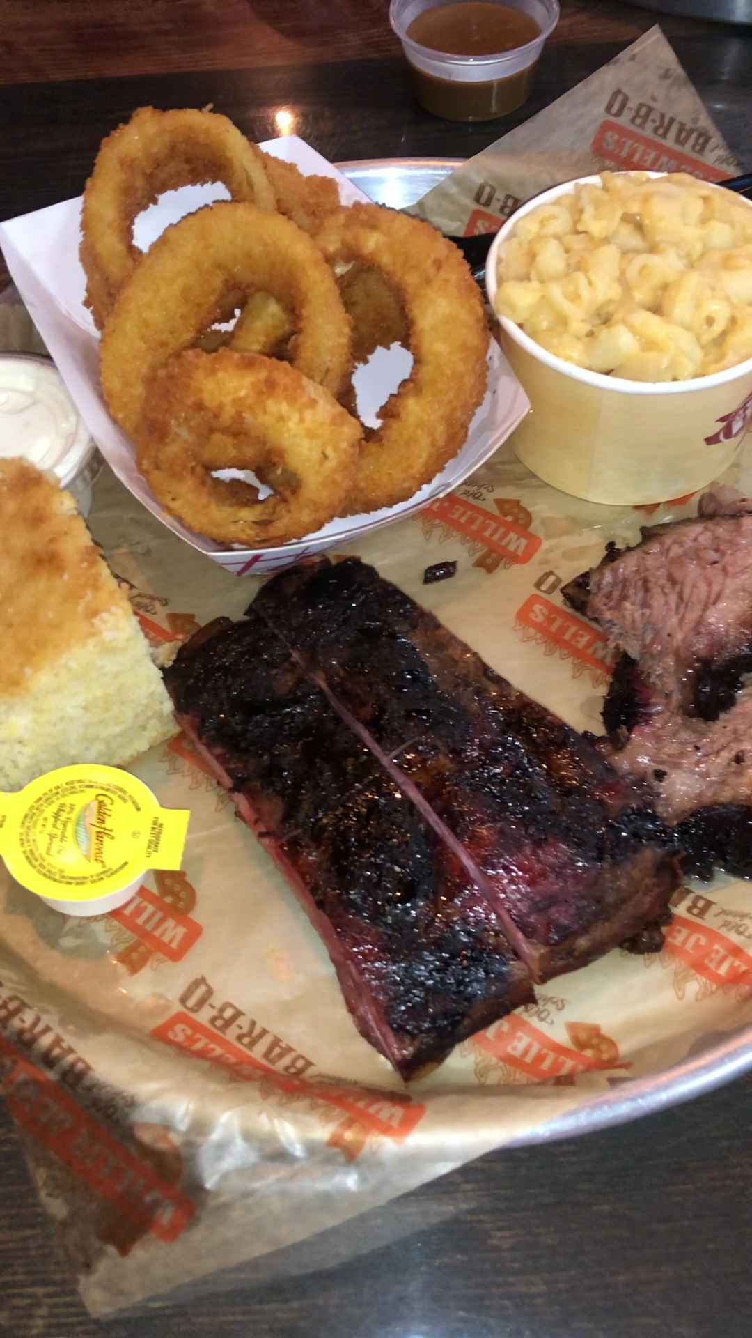 Read moreThe brisket was decent. The ribs, really good. One server was very helpful and I know he felt horribly about spilling food on me, and a broom falling on me.
