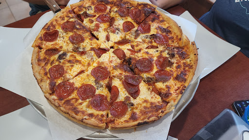 Edit: Had a bummer of an experience recently. Coworkers decided to have an end-of-the-week pizza party, so we called and ordered three 24" party pizzas for delivery. Driver showed up an hour later after calling the wrong phone number despite giving them the correct one to call. Asked if he had brought any paper plates or napkins and he said, "you guys didnt ask for any". Like, for real, man? We just ordered 3 party pizzas and spent $115 to feed 13 people and paper plates aren't already immediately supplied to go with the pizzas? Dude then said, "well, we threw in a coupon for the next time." We read the fine print on it and it says you have to collect TWENTY of those coupons to even redeem their offer! Anyway, picked up the food and realized the boxes weren't even warm anymore and once we got to the break room we confirmed that the pizzas were already room temperature and smushed together during transit. Not sure how long this dude had the pizzas in the car and how erratically he was driving and but they were definitely jostled around with pieces overlapping one another making several small mountains the way Earth's tectonic plates do when they collide, and on top of that they were also no longer warm. We all grabbed slices and we all noticed there was barely any sauce in any of the 3 pizzas we ordered (1 cheese, 1 sausage, & 1 pepperoni). It was super dry and practically flavorless because it was seriously lacking in one of the 3 most important components to a pizza - pizza sauce. It was such an incredible disappointment and a huge embarrassment on my part as I had hyped them all up for what I said was going to be an awesome pizza experience given my previous visits in the past. Such a bummer. Big waste of money. Never again with the 24" pizzas from here. I have brought shame and dishonor upon my dojo. Our disappointment was immeasurable, and our day was...