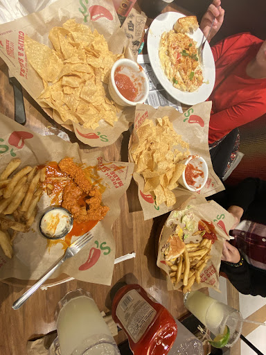 Read moreIt was a wet Tuesday night on May 20th. My girlfriend and I drove to Chilis since she was craving the Triple Dipper a few weeks ago and we decided to finally go and try it. As soon as we walked in, we were greeting nicely and told to walk around the restaurant to find the Hostess. Once we found the Hostess, we were seated and then introduced to the one and only Jacob/Jakob (I’m not sure if it was a c or k). Jacob asked what drinks we wanted, I asked for a Lemonade while my Girlfriend got a Dr Pepper. Jacob told me that there was different flavors of the lemonade and I got the dragonfruit one. The dragonfruit lemonade was very pleasant and looked like a Slurp Juice from Fortnite. Next, Jacob asked what we wanted and we both got the FAMOUS CHILLIS TRIPLE DIPPER! We got the Buffalo tenders, chipotle honey mozzarella sticks and the big bites burger things. All three of the choices paired really well with each other and the ranch made them taste even BETTER. Now we get to the climax of this fabled review: JACOB! Jacob came up to our table and I asked “What are you thoughts on AI?” He gave us a very great answer of how AI has evolved over time and he mentioned about these chips that are put into the back of peoples head or ears. He said it was very scary how our phones listen to us. Next I asked who would win, “100 Men or 1 Gorilla?” And he absolutely loved the question. He said the humans would win for sure since depending on the type of gorilla and the amount of men rushing at 1 gorilla, the gorilla would stand no chance. After a couple minutes of more eating, Jacob came back and said “I have a question for you: Is water wet?” What an intriguing question someone from Chilis would ask. My girlfriend answered within seconds saying that if water was touching a surface, then it’s for sure wet. Jacob loved our response and then we got into the topic of Laurel and Yanny aswelll as what color the dress is. Jacob was such a genuine guy, very positive, loved our conversations and questions. Overall, the vibes were perfect for our little Chilis date and I hope Jacob gets promoted. Jacob, if you are reading this, I hope you have a wonderful day, you made both our nights...
