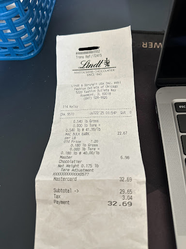We had a really nice experience at the Lindt store in the Fashion Outlets of Chicago (Rosemont). A staff member (wish I caught his name) greeted us with gold chocolate coin samples and answered our questions based on what we were looking for.