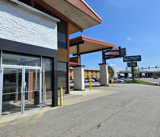 We stayed at the Hampton Inn-Chicago O'Hare Airport and asked where we could go for food. It was about 1:30 p.m. and we had our 2 British friends, Marie and Gary, with us, and they had to fly out about 4 p.m. and we were leaving the following morning. We were told we could walk to the Q Bar and that it was pretty good. So we went there and when we first went in, there were only 3 customers, 2 of which were standing at the bar waiting to pay their tab. Music was playing quite loudly, and we didn't see anyone that worked there. After a few minutes of waiting and wondering if they were indeed serving lunch, we saw a young woman behind the bar. We asked for menus, which we got and said we wanted to sit at a table far from the bar as it seemed the music was a bit quieter. Our server, Diana, came out from behind the bar and asked for our drink order and we asked if she could turn the music down and after taking our order, she did do that, which made us much happier. We then ordered food, 2 burgers off the special menu for myself and my wife, 1 burger from the regular menu, for Gary, and Farfalle pasta for Marie. The prices were really low on the special menu, $7.99 for a burger that you could get with cheese, and that came with fries. My wife got the cheeseburger with no extras, and I got the cheeseburger with bacon, only $1.00 extra, and mushrooms and fried onions, only $1.00 extra, cheap!! After a short wait, we all got our food, and the portions were very generous. Gary's burger off the regular menu was only $12.99, and you could get all kinds of extra stuff on it for free. So he added cheese, bacon, and pulled pork. When it came, we couldn't even see his burger for all the pulled pork on top of it. It was a huge portion. Well, all the food turned out to be very tasty, Diana took very good care of us, and we left quite happy with our choice of venue for lunch. I highly recommend the Q Bar, which is attached to...