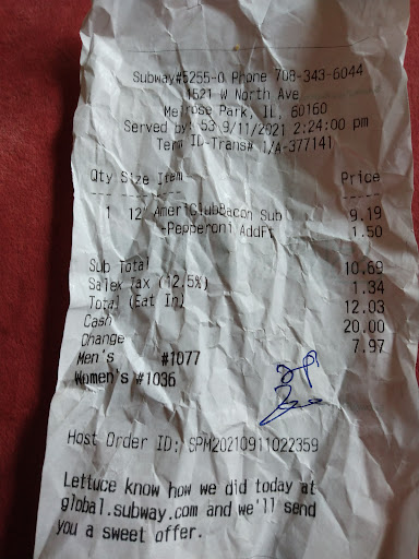 Read moreI brought a veggie patty 12 inch sandwich I kindly asked may you also add tuna into my order. Half extra meat/protein is $2 extra. She claimed she added 5 scoops. Which she didn’t AND she charged me $3.20 for tip WHICH I DID Not AGREE. I informed her i didn’t agree to these tips and subway policy is $2 for extra meat not $5 FOR TUNA!. In total my sandwich came out to almost $25 ! I could’ve gotten 2 separate footlong sandwich for the same price. When I confronted the lady about it she blamed it on me saying i clicked on the tip option which I DID NOT! Be very careful and read your receipt. ALSO theres 2 bathroom. I asked can i use the bathroom she gave me the code. IT STINKS and the water dont even work. See it for yourself, i promise you they’ll give you an excuse not to use the bathroom vs...