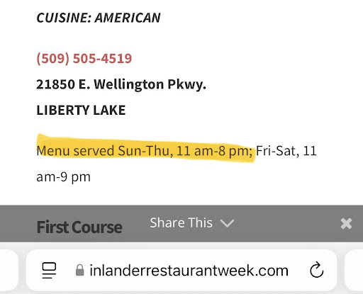 Read moreMy husband and I were very excited to try Emry’s during restaurant week. We work opposite schedules and we had one night to try one restaurant. Unfortunately, we decided on Emry’s. Online, on their answering machine, and printed in the Inlander, it was posted that they serve the restaurant week menu until 8pm. Both my husband and I work until 7pm typically, but we both got off early to quickly pick up our children and make a mad dash- 50 min drive from our home- out to Liberty Lake to get there by 7:30pm. I tried to call the restaurant and see if it was ok that we were arriving 30 min before close, however you are not able to speak to a live person on the phone. When we arrived, at Emry’s, The open sign was on, 4-5 workers were all standing around talking and a female worker looked visibly annoyed, so I had to ask if they were open and she said no they closed for the night. No apologies, no explanation, nothing. The fact that they had to close early during restaurant week makes me think that maybe they aren’t as good as they sound. But we will never know. Do yourself a favor and go to True Lengends Bar and Grill. 0.4 miles away, they aren’t what we would have picked for restaurant week honestly, (we had a whole list we wanted to try but wasted our time/night on Emrys.) True Legends was a pleasant surprise, scratch made sauces/dressings, amazing chowder, I still was able to get a burger. Also the patrons/liberty lake locals are awesome! When I explained to them that Emry’s wouldn’t let us eat there after we made special arrangements, they bought us a round of...