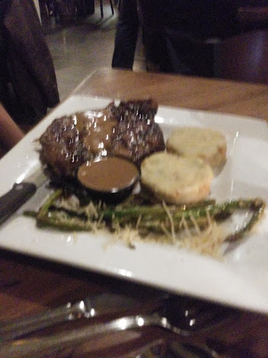 For entrees, my friend went with her favorite, Chilean Sea Bass. It was served with thin asparagus spears (which she and I both prefer) and potato croquettes, which tasted a lot like a loaded baked potato in small pancake shapes. As for the Sea Bass, she said she liked the way it was grilled and the seasoning on the outside was good. The actual fish was a little mushy. This is her go-to at a lot of places, so I trust her opinion on the fish.