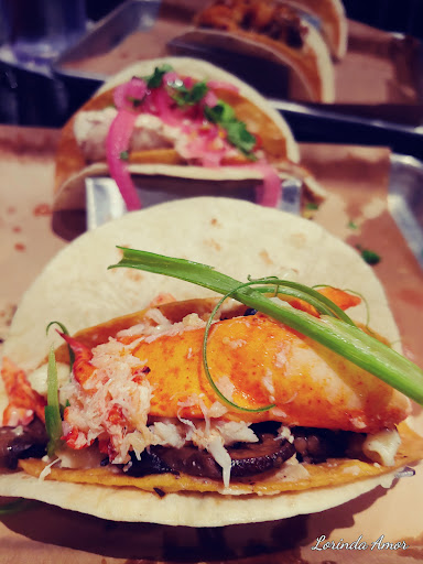 The Crown Jewel- butter poached lobster (claws,) portabellas, truffle oil & shavings, Mac n cheese, shaved green onions The bad: you know it's coming .... the Mac - pasty & tasteless - did nothing to enhance this taco. It would do much better with more mushrooms. Also, I didn't get much truffle, but my bestie said it came through for her. The good: umm LoBSTER‽ It was well cooked and perfectly seasoned. Once we took off the Mac this taco was my favorite. More green onion and would order this again.