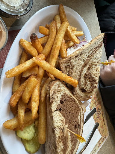Stopped in to try lunch. Place is very dated, cold and no background music so can hear a pin drop. Servers were having a grand old time and were a bit loud and obnoxious in such a quiet place it was a bit much to listen to. Our server never came back after dropping food off. As a server you are getting paid by the customer, how do you expect good tips or any tip if you can not follow the simplest of server 101 and do the bare minimum? Take order drop food check on customer couple mins later. Apparently our server pictured below, her phone was more important than the 2 customers in the building. We were your only table and had to even ask for the check. This is why you received a $0 tip, we tip based on service as most do. I don’t blame Food on the server or anything else, but the service was awful. Newsflash people eat out for service and convenience. You can’t take either of those away and expect people to come to your establishment when they could just make it themselves for a quarter of the price. Prices are reasonable, food was typical mediocre diner food. Corned beef in Ruben was very tough and chewy, turkey was ok on sandwich. Fries were tasty. I would...