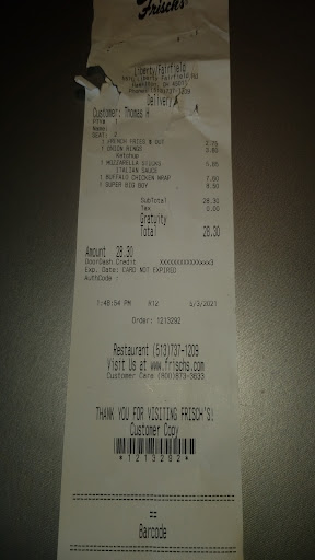 The restaurant was clean. But it was also sparsely occupied. Between the weather and Covid, I guess it is really tough for these folks. They've been around 75 years, so if you like Frischs, maybe show them some love.