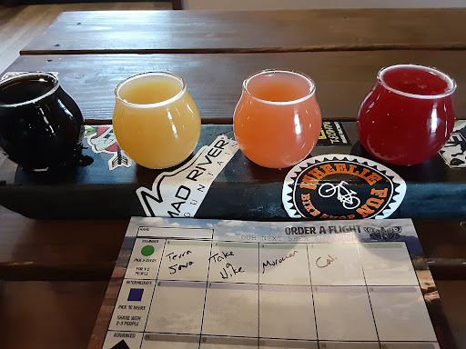 The brewery is tucked down a side street from downtown Powell, nestled up against the train tracks, with lots of grass parking available. They have a large outside area with picnic tables, fires, and an outside bar open in the summer. There's a large wrapping patio with more seating. Inside is your typical industrial chic brewery bar that sits approximately 50 patrons. They play "millennial light rock," a mixture of third wave emo and 90s alternative rock.