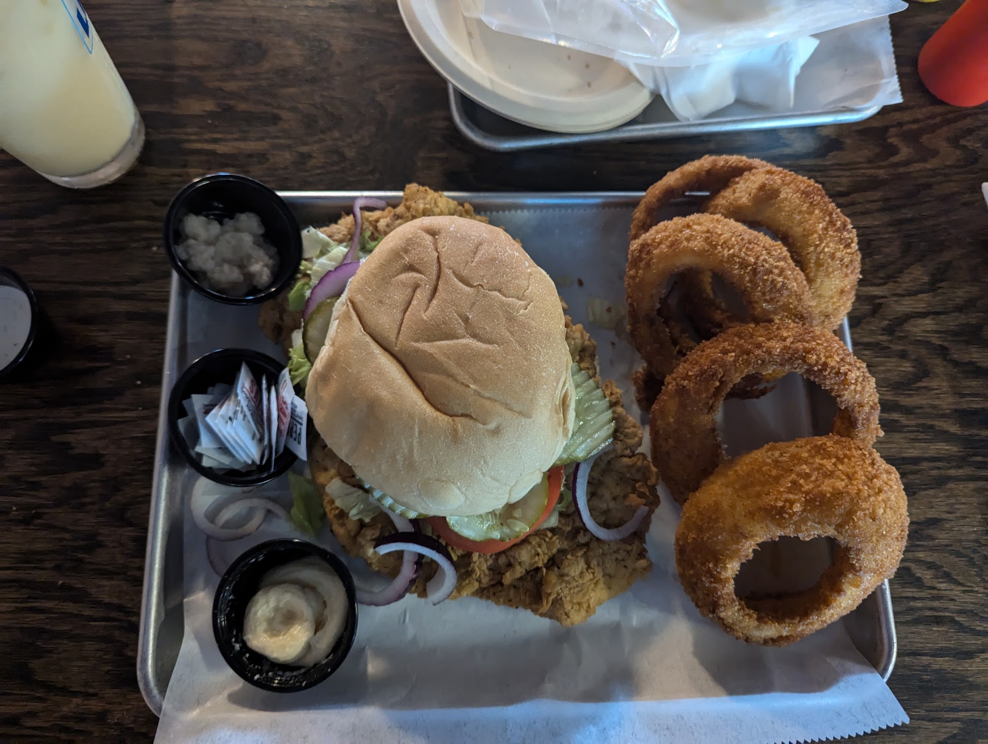 Read moreVery disappointing. 6pm on a Saturday and there was only one other table in the place. We sat and were given a “menu” with maybe 5 items. It said limited menu on it but no explanation as to why. All Fried Food. No other options at all. I asked about a salad and was told they don’t have them. Everything is served in and on disposable items. Drinks in plastic, plastic silverware, styrofoam plates and bowls when they are charging $15-$20 for a meal! We had 4 people in our party. I didn’t order a meal, we had an order of nachos, a tenderloin sandwich meal and 2 pulled pork Mac n cheese meals. Food was decent, not amazing. After tip the total was $120. I’m all fine with paying for a dinner out but this was a bit crazy when your fork is literally plastic! Not sure what has happened but unfortunately we...