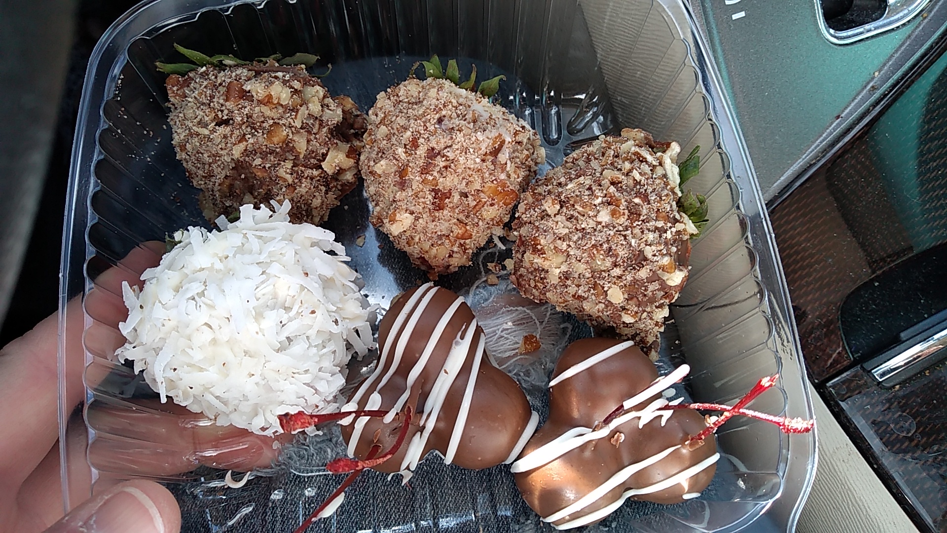 The reason I really like them, they always have the standbys, but almost every time I go, they've thrown a twist on chocolate, today was a chocolate covered pretzel with ground mixed nuts and crushed...