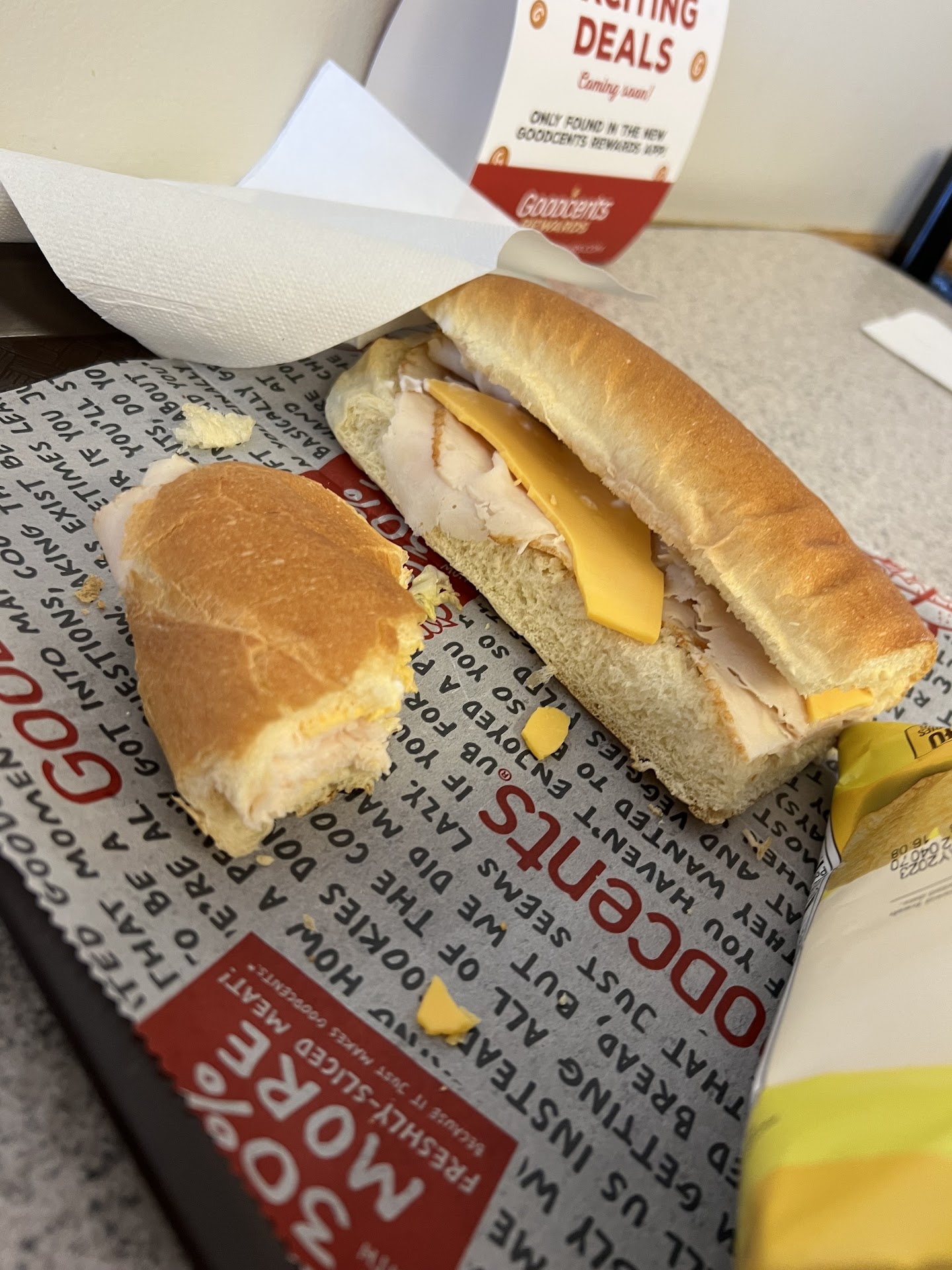 Read moreAbsolutely impeccable. Truly life changing. Not only was the sand which delectable but it could’ve been suited for a king. The meat, oh my god the meat. As it fills my mouth my glands water, accentuating the texture and moistness of the well cut turkey. The bread is that of the finest grain, the simplest, yet most exquisite flavor, truly doing it’s job of holding the masterpiece together. The veggie selection was like that of a market in Paris, with the freshness of a ripely picked pepper. These vegetables truly connecting me to nature. The sauces tasted as if they were newly expunged onto my tasted buds, blasting my enjoyment to untold heights. Finally, the cheese. Like sucking straight from the udder, the cheese was magnificent. The dairy products used at this establishment are truly the greatest to be brought upon the human race by that of the milky cow in the Milky Way. The sandwich truly satisfied every aspect of the beloved food pyramid. The staff were the friendliest I have ever met, explaining each item carefully to me. Truly treated me as there only need. I am great full, and not worthy for the salvation provided to me at Goodcents...