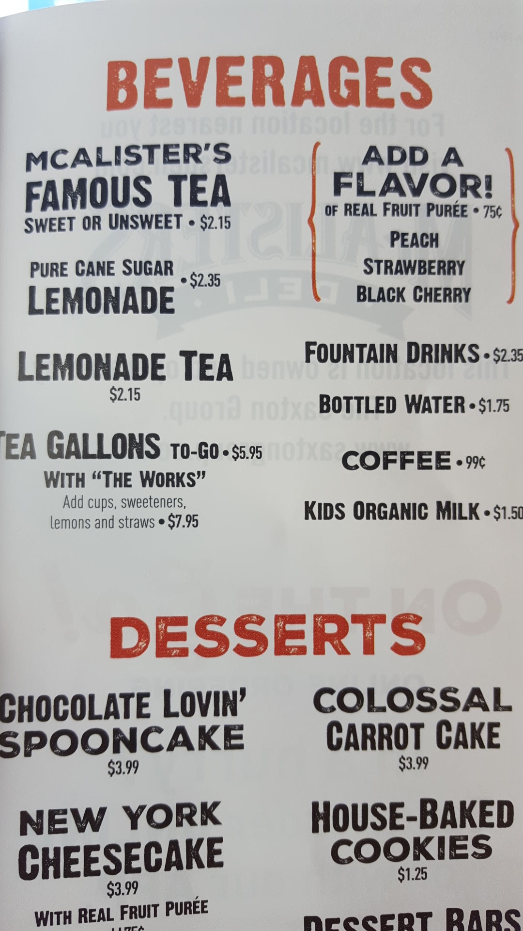 Our food is our foundation - we wouldn’t be here without the 13 layers of our McAlister’s Club or our giant Spuds covered with your favorite toppings. Our goal is to serve handcrafted food and delicious sweet tea that is simple and satisfying – for every palette, even mom’s pickiest eater. We take familiar flavors and add the special McAlister’s touch that you won’t find anywhere else.