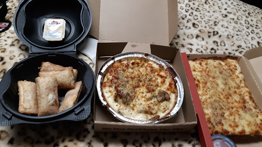 Tastes good.............. but we didn't get any flavoring on the crust like I ASKED FOR.............. two stars at best (3 star food, 1...