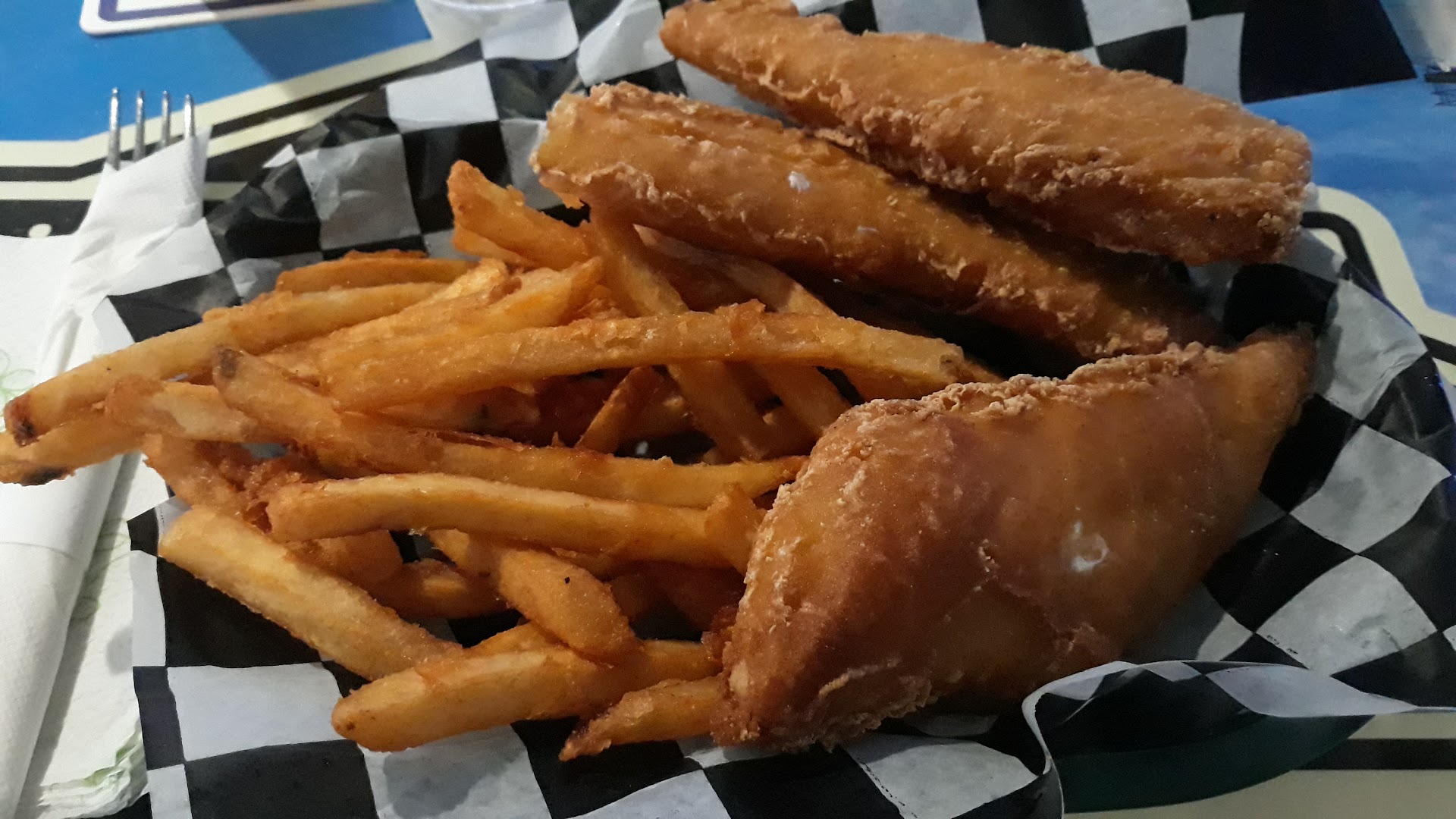 The food....well it was pretty good. Price was decent. I had the giant fried taco. It was big... I’ll give them that, but I would have liked to see more than just a sprinkle of cheese on my taco. I would like black olives and actual shredded lettuce. $5.99 was a deal but I actually would pay more if they filled the taco up better. Tomato and sour cream was on the side which for folks that don’t like that stuff ( like my husband... more for me 🙂) means they are not scraping it off!!! That is good.