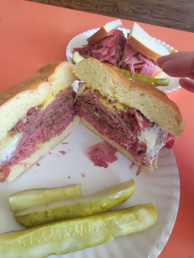 Burts Deli, the home of the Yummy, has become a favorite destination for deli-style lovers like myself. Burt's creation, the Yummy, is a mouthwatering combination of corned beef and pastrami on rye, complemented by cheese, mustard, and horseradish, with a side of pickles. It's safe to say that I am truly grateful Burt invented this delectable sandwich.