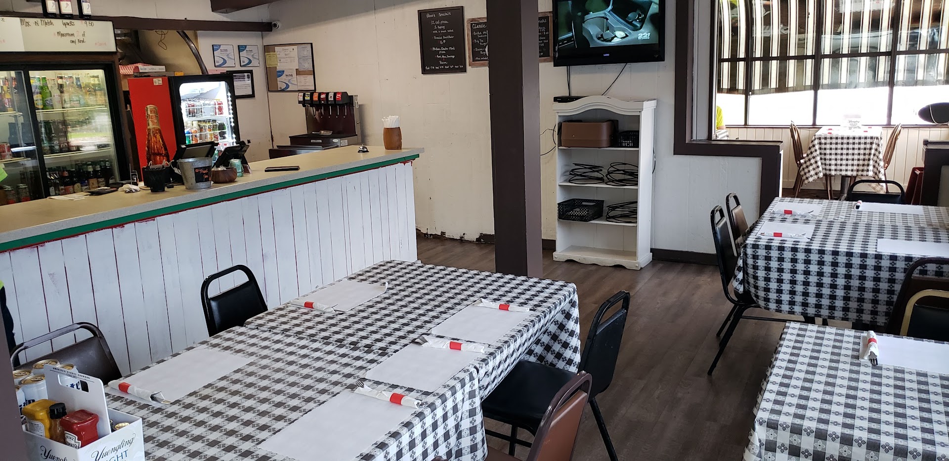 The staff is very nice and the food was quite good. Prices were pretty reasonable. There were 6 of us that ate our fill with plenty leftover for about $60. We had salad, hoagies, square pizza, soda and French fries with about half of the pizza and some salad leftover. The staff was kind enough to give me foil and containers to pack up our extras since we are staying in a hotel. In the book for the nearby Ramada, it shows a 15% discount for those staying there for the restaurant, but they said they have a new owner who does not honor that. They had cups and straws for soda, but no ice and although it was refrigerated, it was not very cold. There were a couple of flies buzzing around too. With the addition of ice and a few minor improvements, they will earn that 5th star! We have been here before and we definitely will be...