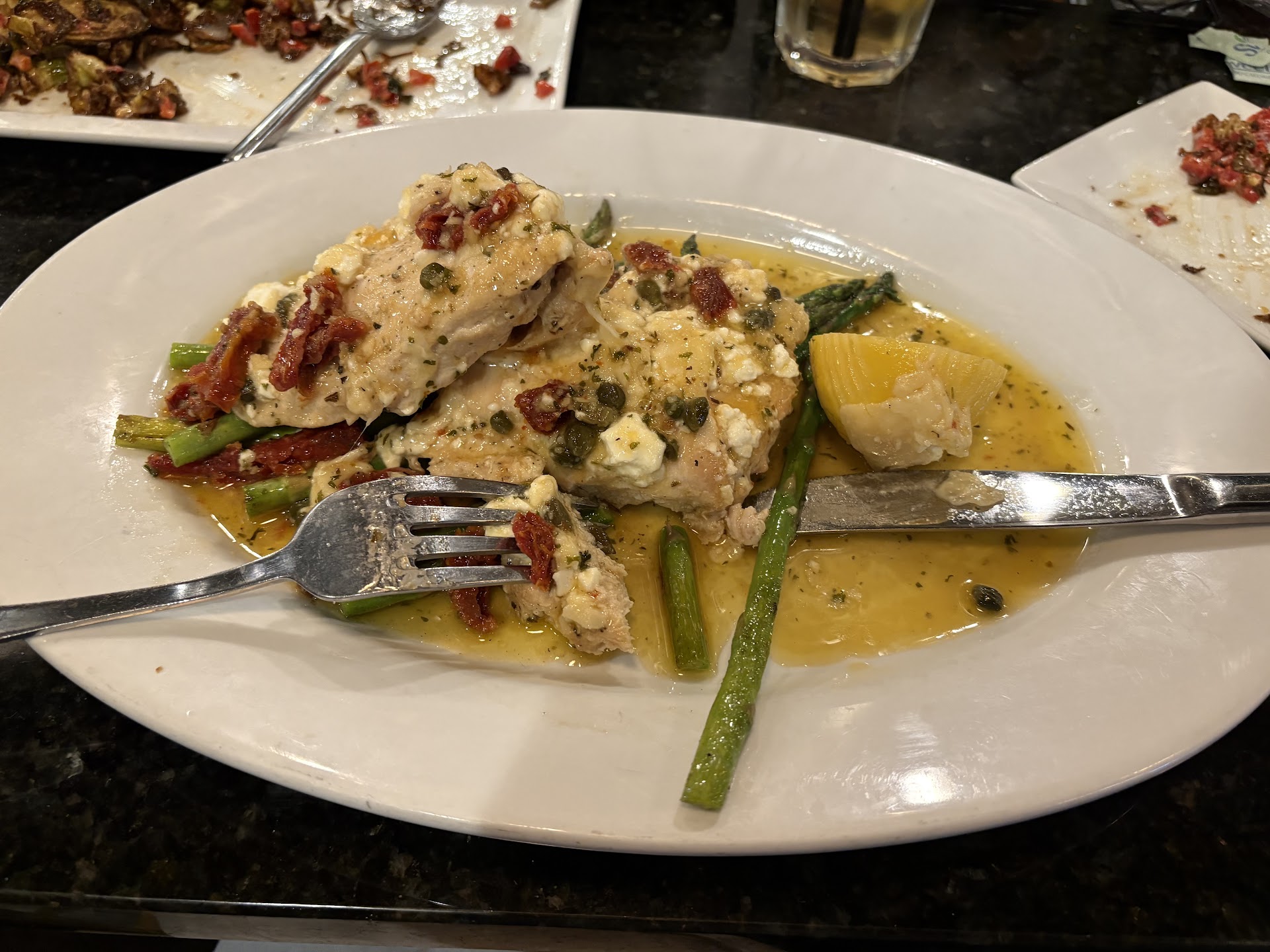 food: acceptable, but nothing particularly spectacular (again, for the price.) We got the Asiago dip appetizer, which just generally did not have as much flavor as I would have expected, though that may be my personal palate. It comes with delicious crostini, however.