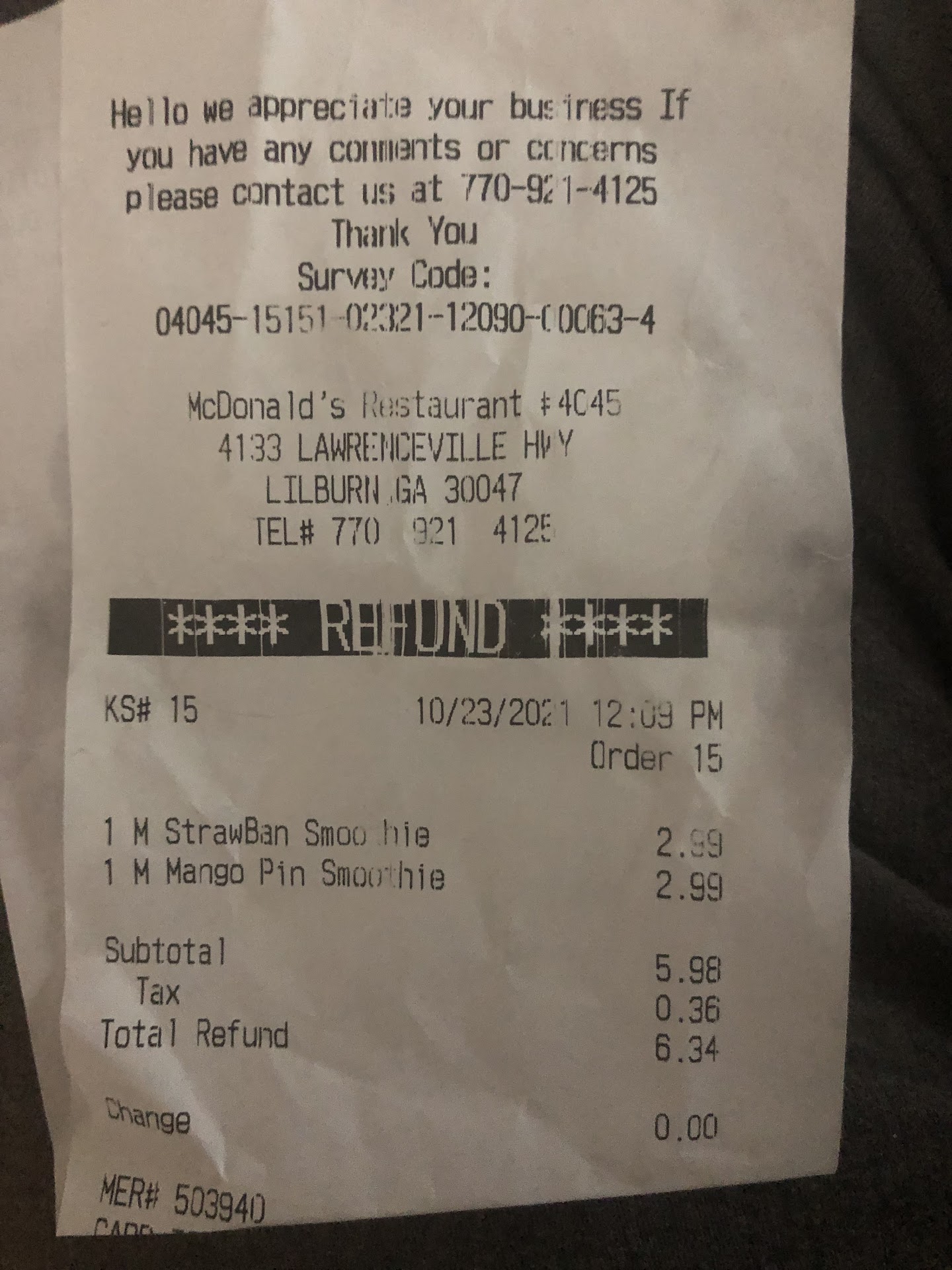Read moreHonestly I give this place zero stars! I came in Dec 23 to order a Quarter pounder w/cheese and the person at the register was extremely rude. I asked for her name & for her manager. Unfortunately she was the night time manager. I politely let her know that she has awful customer service and she rolled her eyes at me. As I sat back waiting for my order, I watched her rudely turn down walk in customers at 10pm when the store clearly states closing is 11pm. She never once apologized for any inconvenience, instead with a nasty attitude told customers, “I ain’t gonna take no more orders at the front & you can go thru the drive thru but it’s gonna be a awhile before we take your order”. Not only was she rude but so was the other staff member taking drive thru orders and slopping burgers together. Again as I sat back waiting maybe 10 mins for my burger and fries (that were cold and stale) the guy slopping burgers made a nasty and offensive remark clearly heard by me and my niece. The guy used fowl language and both him and the “manager” basically let it be known they don’t care about their job. Unknowingly to my knowledge while in the restaurant my niece recorded the audio of this night and it is full proof of how nice and calm we were compared to the way we were treated by the staff. Not only will I never do business with this McDonald’s, I’ll never allow myself nor any family member to do business with any McDonald’s industry. Out of all reviews that I leave, sadly this is my first bad review!! My disappointment won’t stop at this review. I will make sure my...