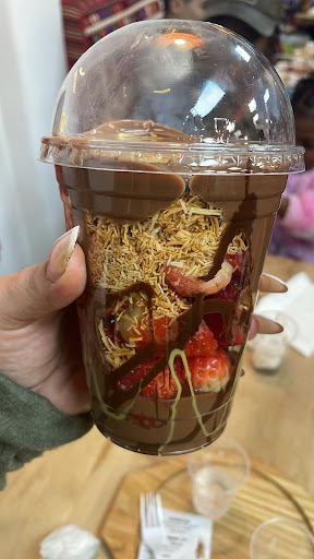 Read moreI wish I could give this place to a higher rating. The place is extremely packed because it is now viral on social media, which most of you guys know. I waited in line for about 30 to 45 minutes. Once I got inside, the man at the register, I’m assuming he was the owner, sold a chocolate bar to the person in front of me. Refused to sell me one because he said he ran out, and then sold one to my friend right behind me. He gave me the opportunity to just buy one small one instead of a large chocolate bar I thought that was pretty insane since I had to wait in line For so long and not be able to get what I wanted. When I went up to him and Asked why he sold my friend behind me a chocolate bar, he said because they were just made. I then asked him to change out my small one for the big one and he asked me for the small one which I showed him that he did not even give it to me yet. He insisted that he gave it to me already when he did not. Then he said he was gonna ring up the person in front of me first and proceeded to Ask what they wanted while I was standing right there. He said it was first come first serve. Clearly, I was there way longer. A lot of people say that they’ve experienced good customer service and that they really like this family and their establishment, but Very unorganized thus far. I would love to go back because the Desserts are really good. But I did not like the Customer Service. Obviously, the Prices aresuper high right now. They don’t even put pistachios on top of the strawberries, just the chocolate and the cream and Kunafa. I thought that was crazy not to mention when I did get a Kunafa, They barely put pistachios on that too. A chocolate bar was $20 for a large. The stretchy ice cream was Nothing special. The Turkish kunafa did taste really good though, the strawberries were also good and the chocolate bar was good. Pricey, but Good. I will try and give this place another chance. I will hope that the customer service is...